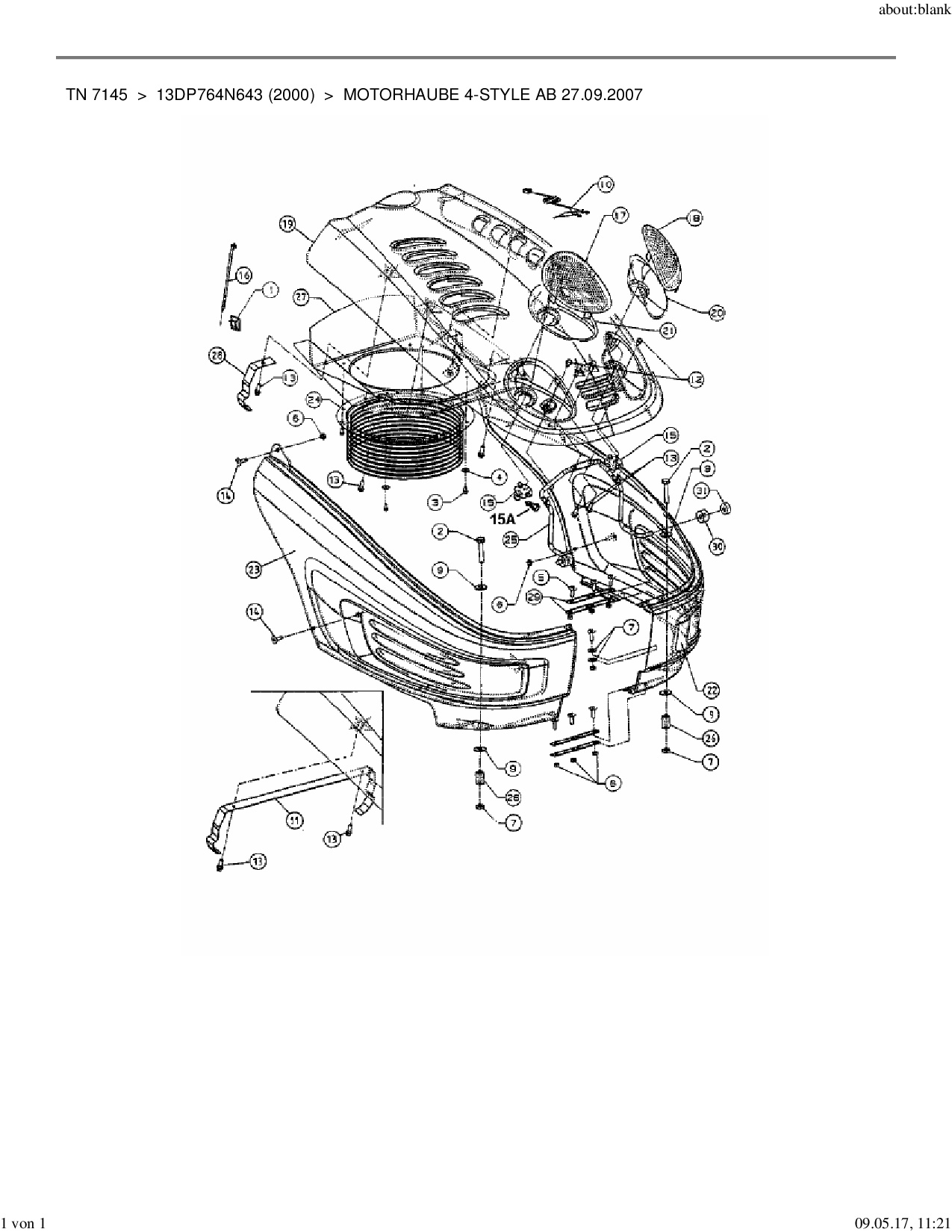 Ersatzteile für Rasentraktor Yard-Man TN 7145 aus der Zeichnung Motorhaube 4-Style ab 27.09.2007: