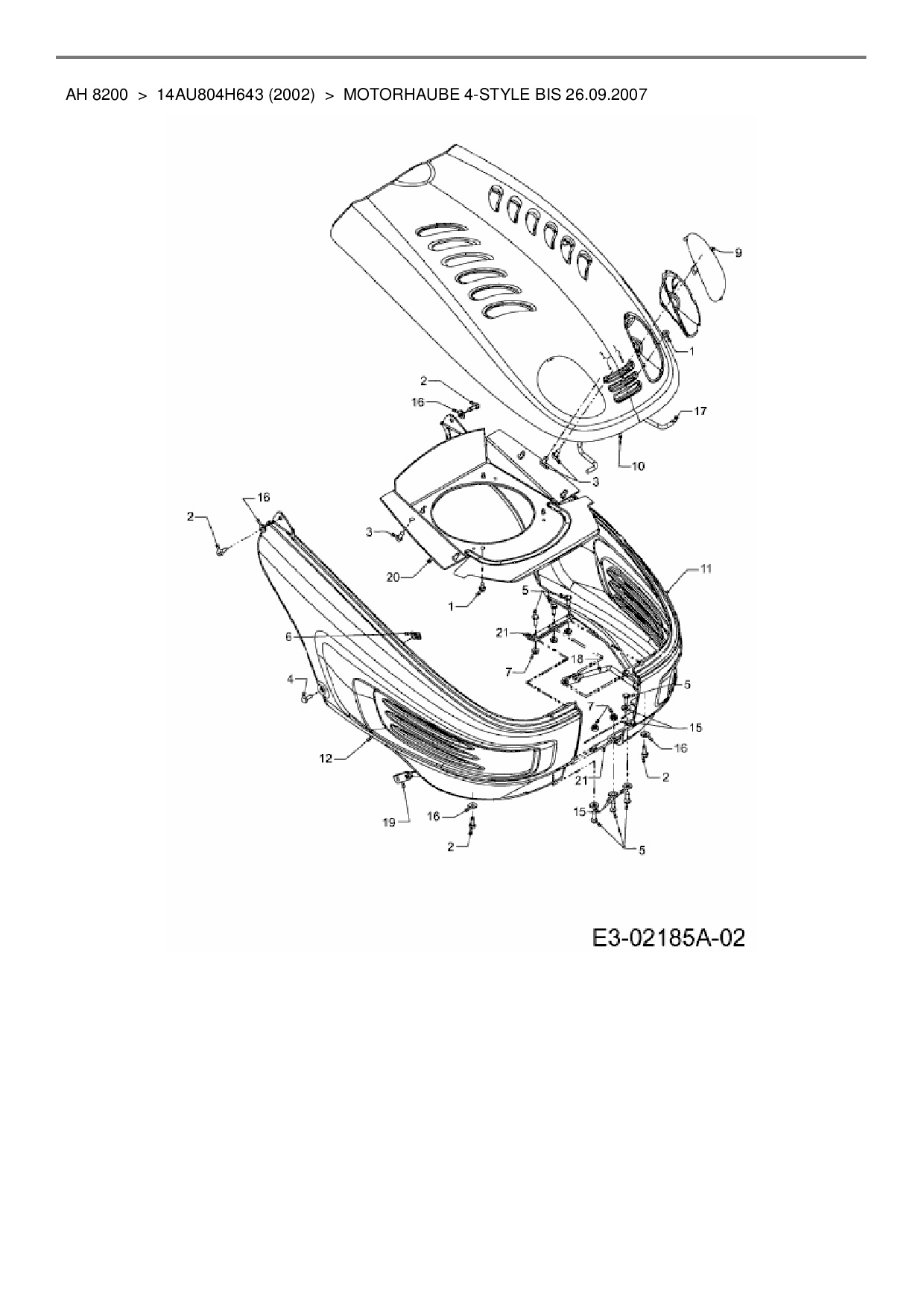 Ersatzteile für Gartentraktor Yard-Man AH 8200 aus der Zeichnung Motorhaube 4-Style bis 26.09.2007: