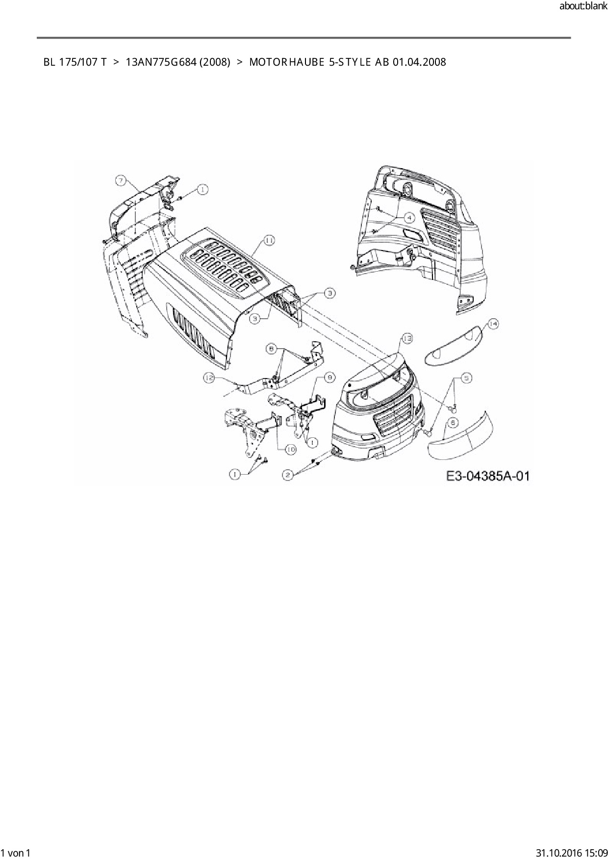 Ersatzteile für Rasentraktor Bolens BL 175/107 T aus der Zeichnung Motorhaube 5-Style ab 01.04.2008: