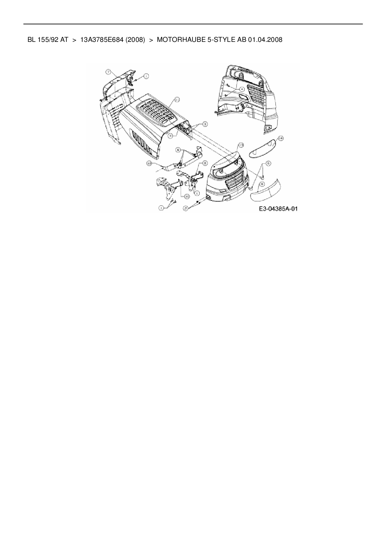 Ersatzteile für Rasentraktor Bolens BL 155/92 AT aus der Zeichnung Motorhaube 5-Style ab 01.04.2008: