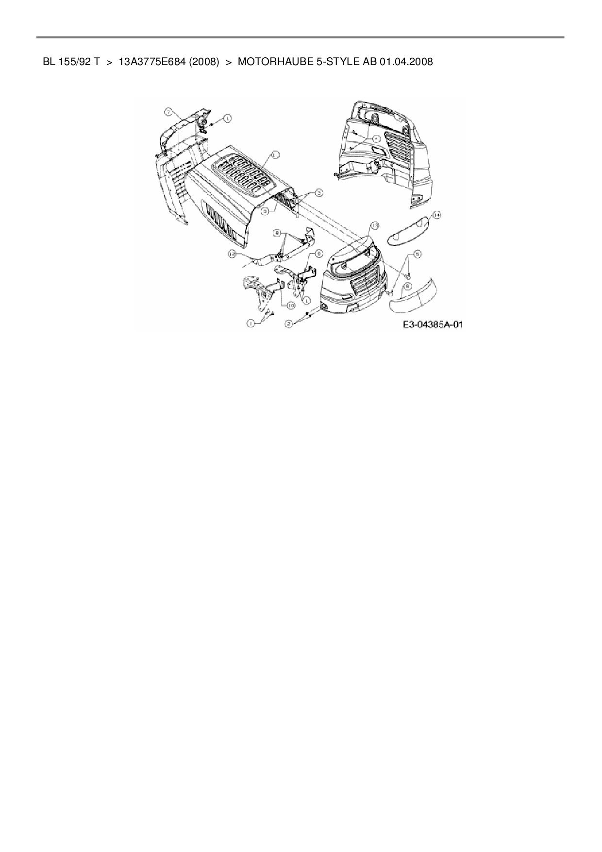 Ersatzteile für Rasentraktor Bolens BL 155/92 T aus der Zeichnung Motorhaube 5-Style ab 01.04.2008: