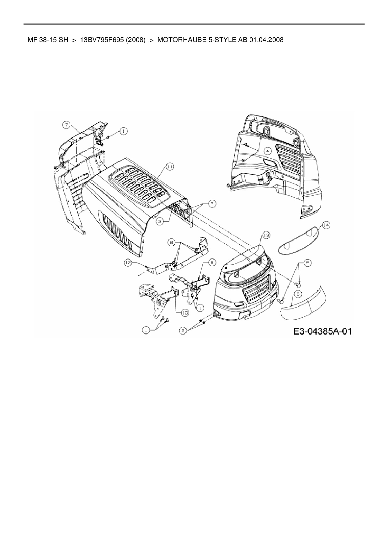 Ersatzteile für Rasentraktor Massey Ferguson MF 38-15 SH aus der Zeichnung Motorhaube 5-Style ab 01.04.2008: