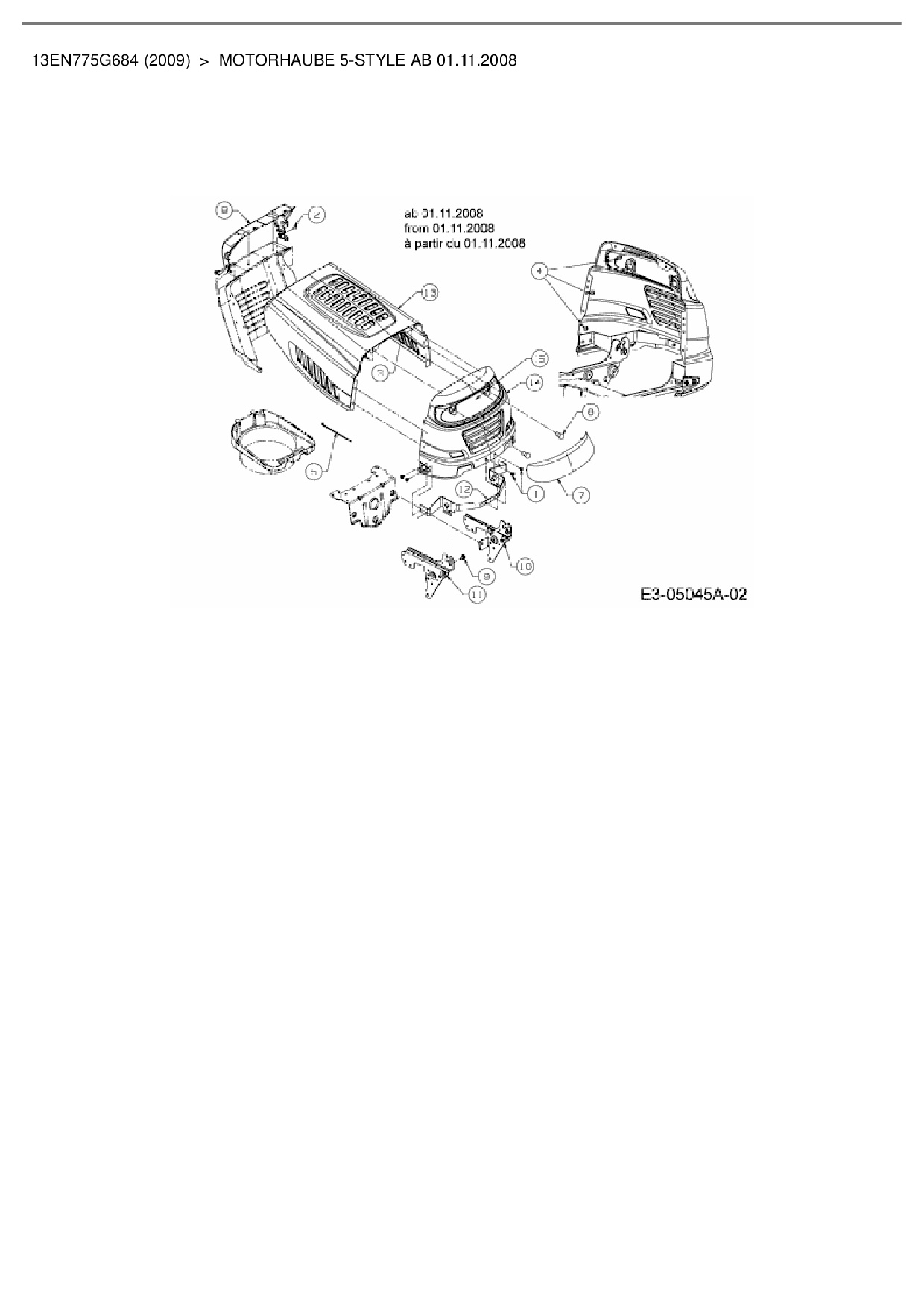 Ersatzteile für Rasentraktor Bolens BL 175/107 T aus der Zeichnung Motorhaube 5-Style ab 01.11.2008: