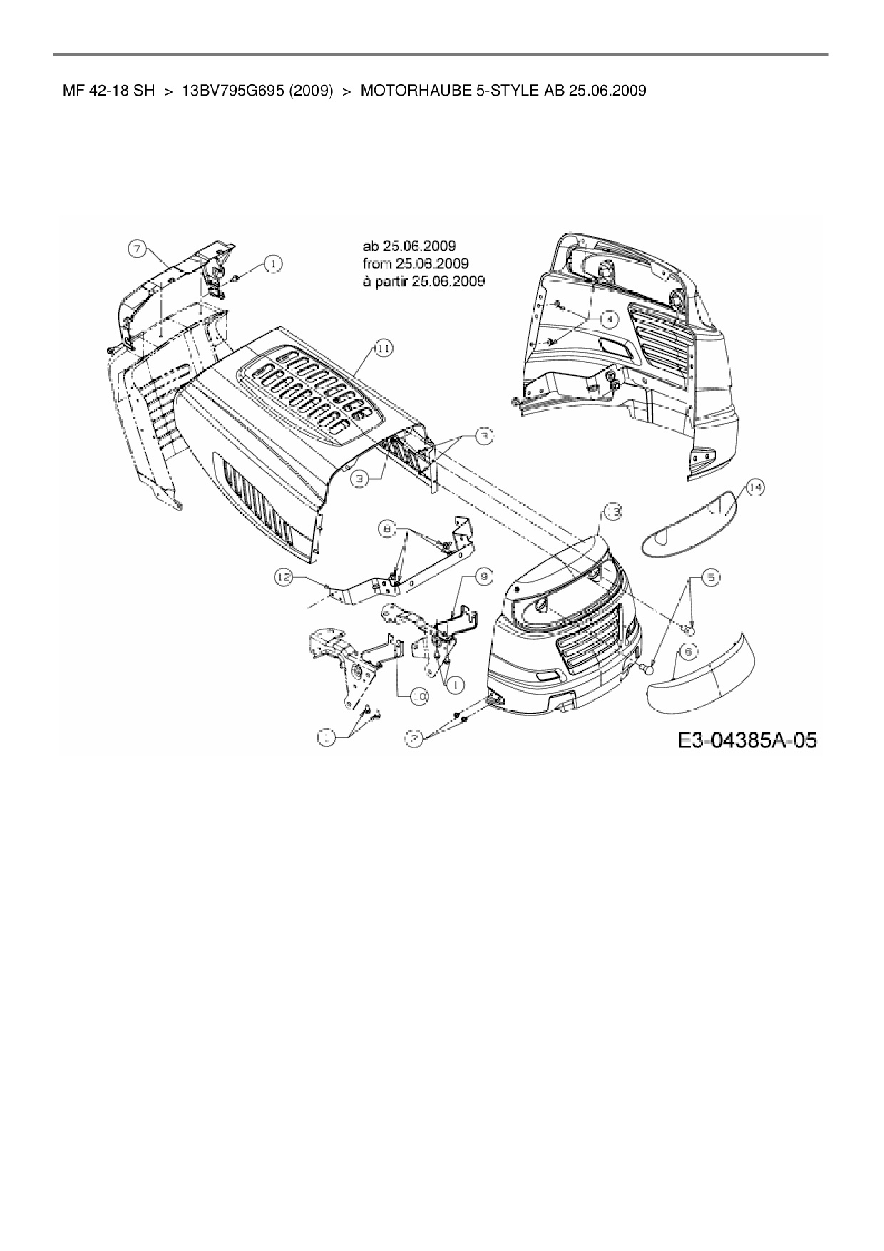 Ersatzteile für Rasentraktor Massey Ferguson MF 42-18 SH aus der Zeichnung Motorhaube 5-Style ab 25.06.2009:
