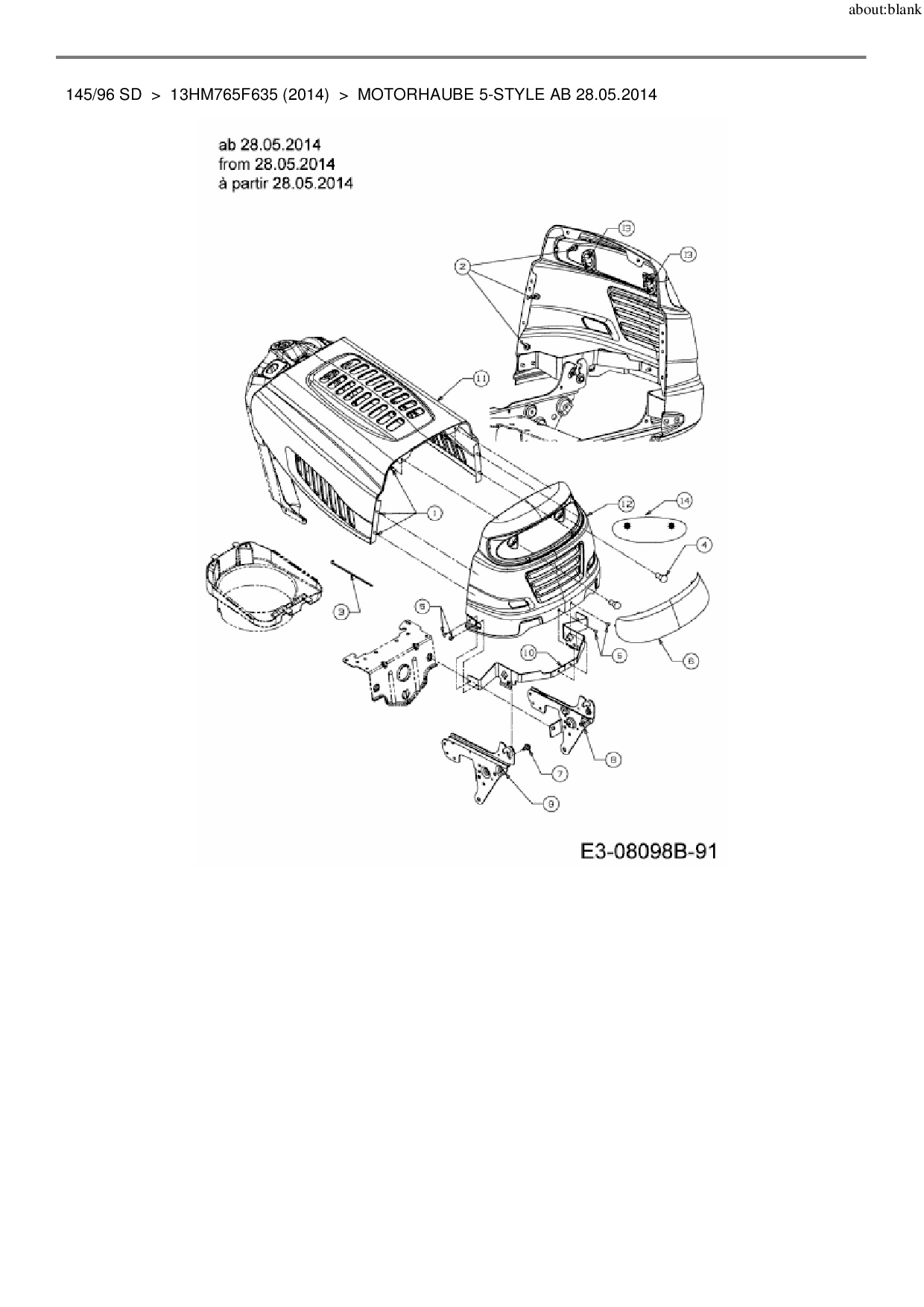 Ersatzteile für Rasentraktor MTD 145/96 SD aus der Zeichnung Motorhaube 5-Style ab 28.05.2014: