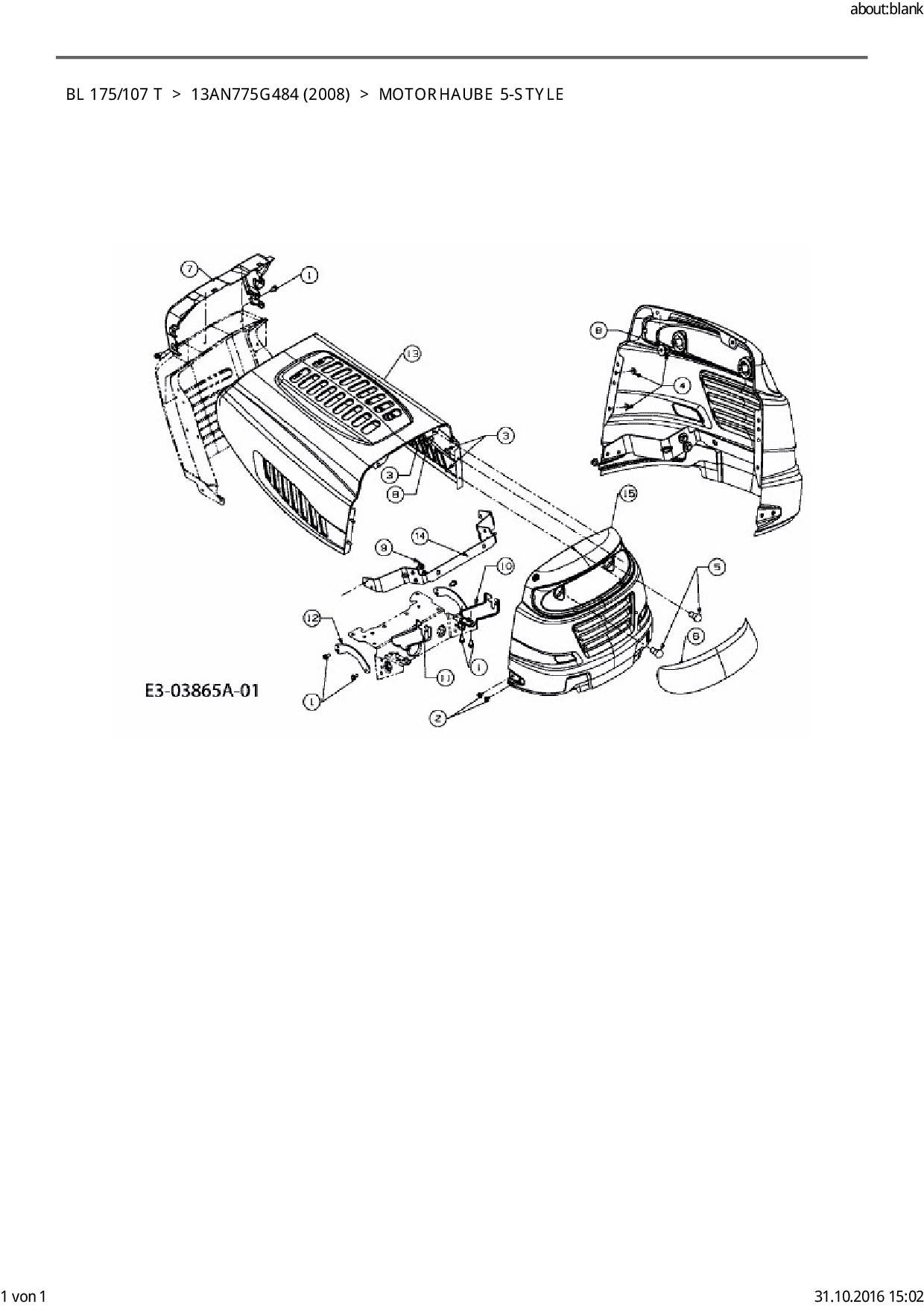 Ersatzteile für Rasentraktor Bolens BL 175/107 T aus der Zeichnung Motorhaube 5-Style: