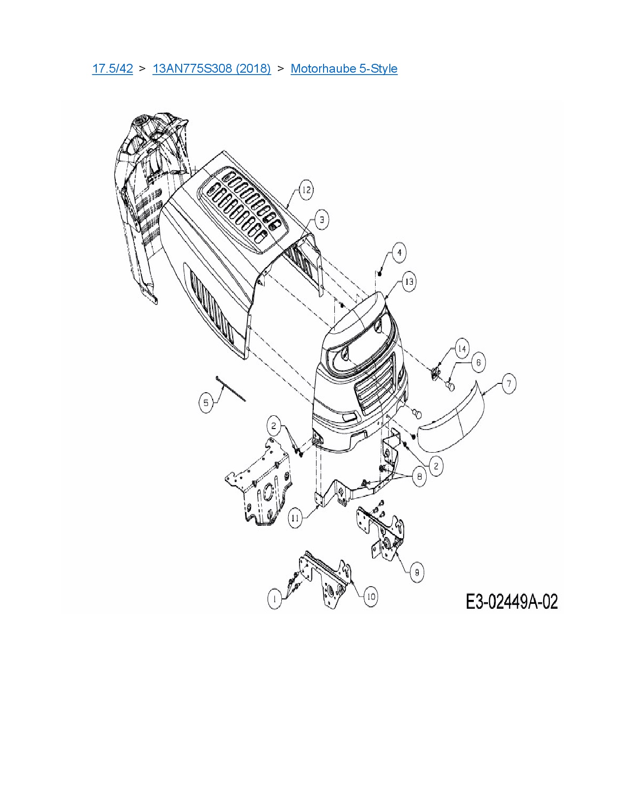 Ersatzteile für Rasentraktor MTD 17.5/42 aus der Zeichnung Motorhaube 5-Style: