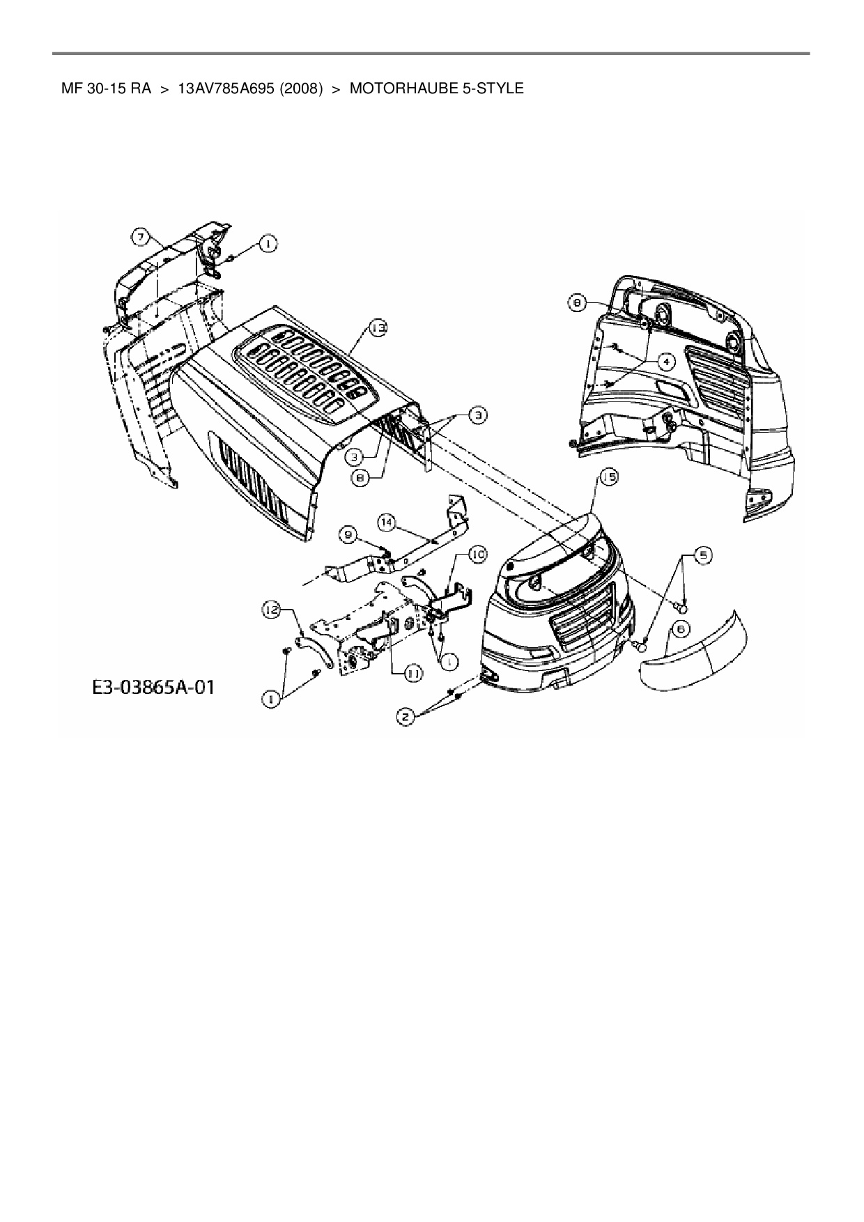 Ersatzteile für Rasentraktor Massey Ferguson MF 30-15 RA aus der Zeichnung Motorhaube 5-Style: