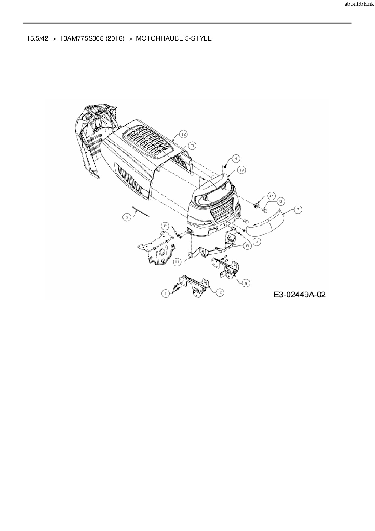 Ersatzteile für Rasentraktor MTD 15.5/42 aus der Zeichnung Motorhaube 5-Style: