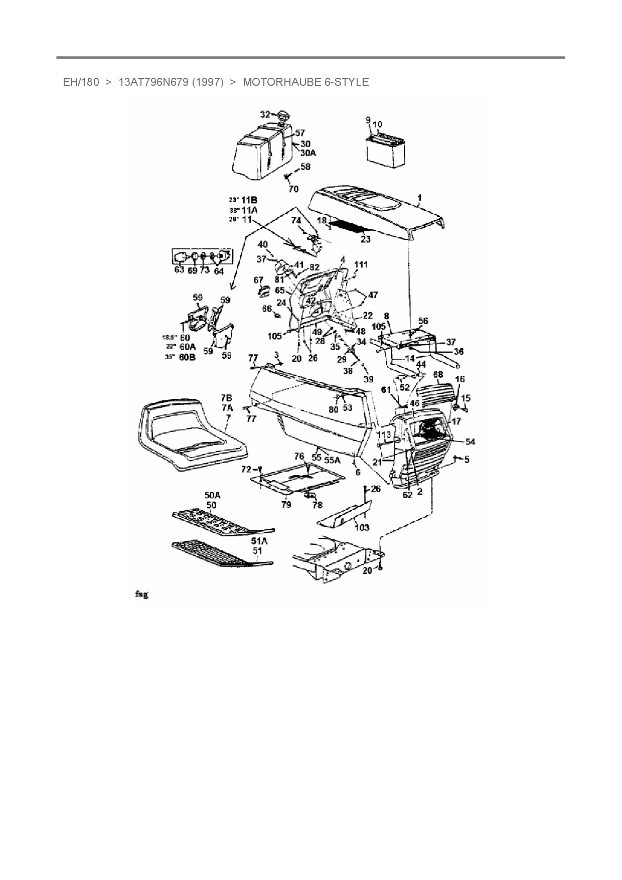 Ersatzteile für Rasentraktor White EH/180 aus der Zeichnung Motorhaube 6-Style:
