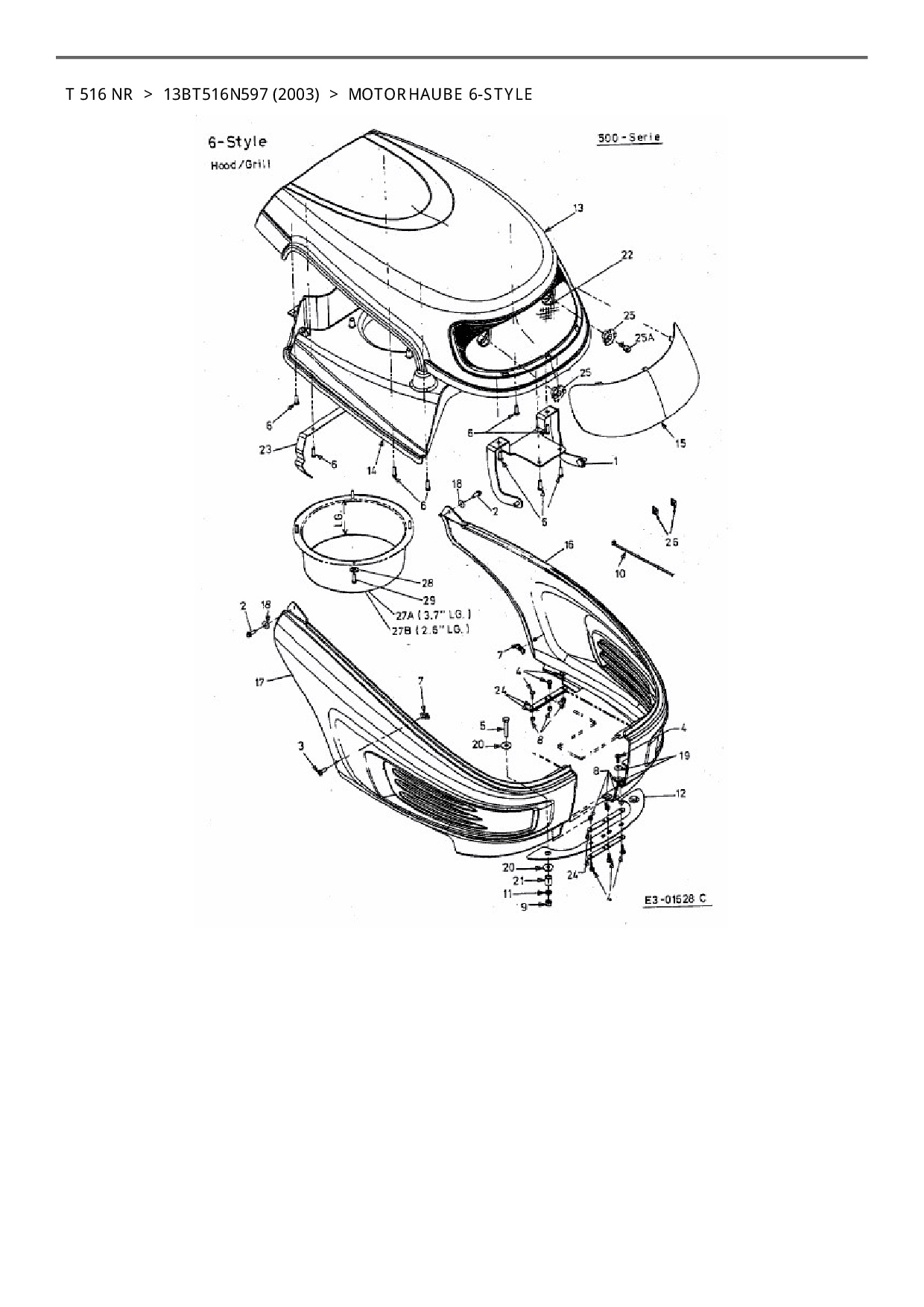 Ersatzteile für Rasentraktor Columbia T 516 NR aus der Zeichnung Motorhaube 6-Style: