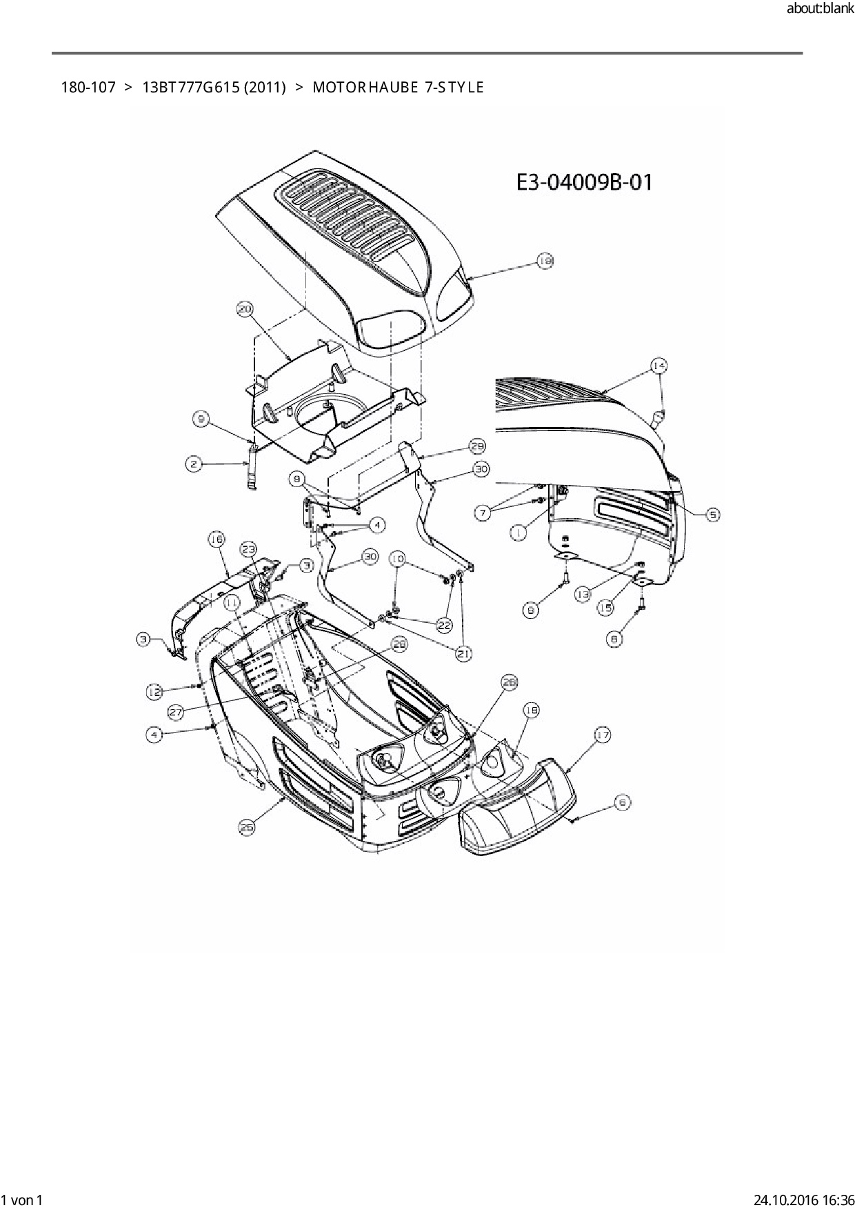 Ersatzteile für Rasentraktor Black Edition 180-107 aus der Zeichnung Motorhaube 7-Style: