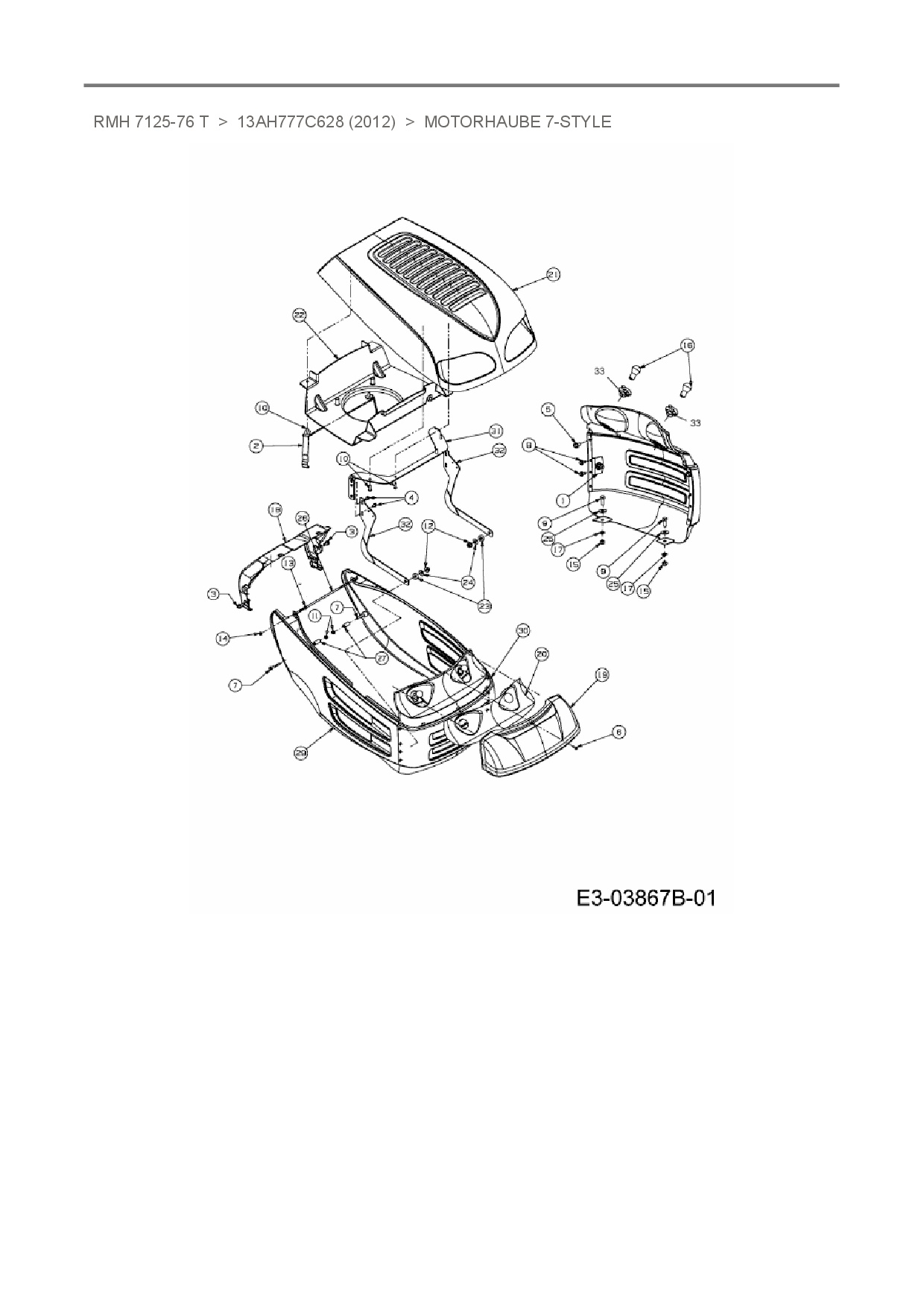 Ersatzteile für Rasentraktor Raiffeisen RMH 7125-76 T aus der Zeichnung Motorhaube 7-Style: