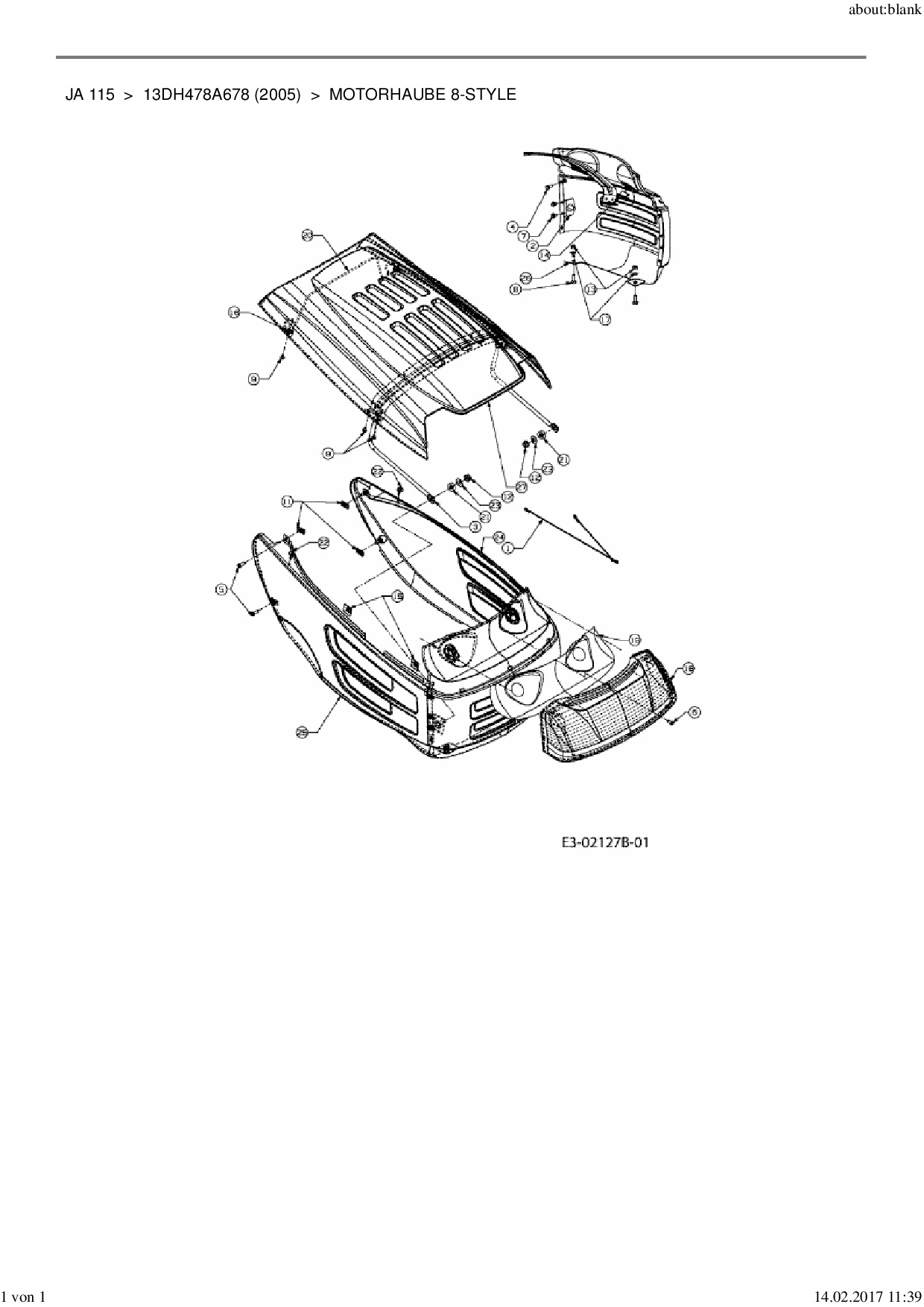 Download Ersatzteil-Zeichnung MTD JA 115 Zeichnung Motorhaube 8-Style (PDF-Format)