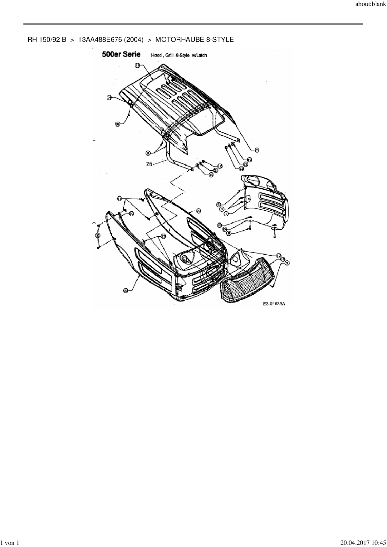 Download Ersatzteil-Zeichnung MTD RH 150/92 B Zeichnung Motorhaube 8-Style (PDF-Format)