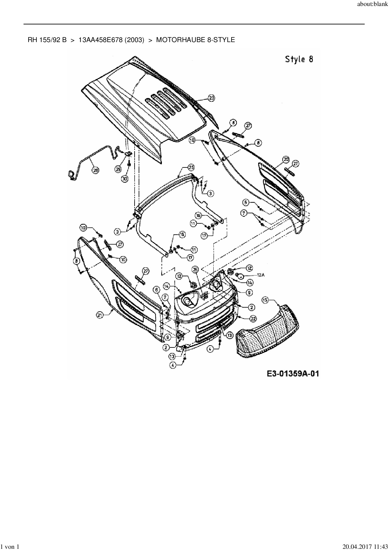 Ersatzteile für Rasentraktor MTD RH 155/92 B aus der Zeichnung Motorhaube 8-Style:
