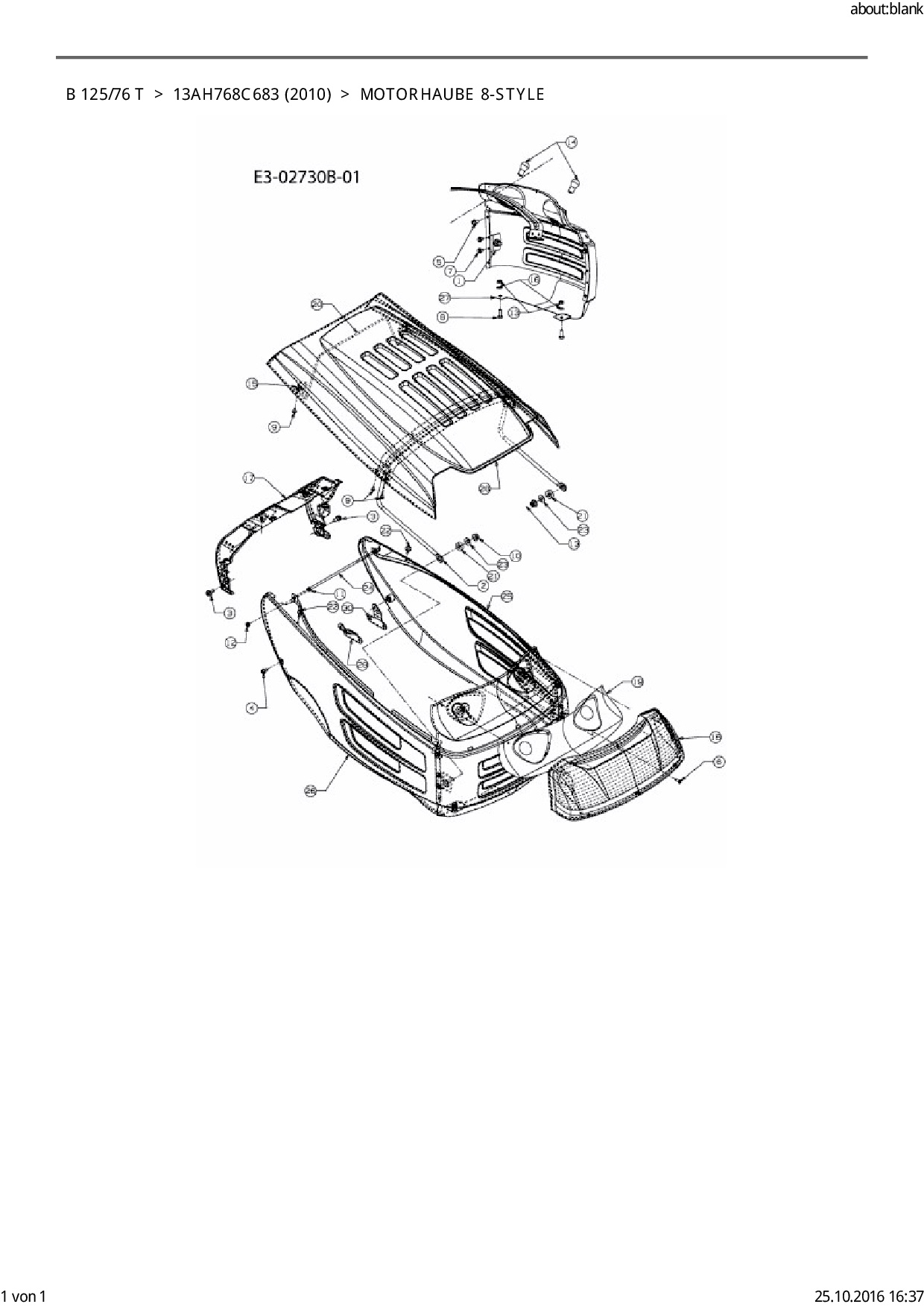 Ersatzteile für Rasentraktor Black-Line B 125/76 T aus der Zeichnung Motorhaube 8-Style: