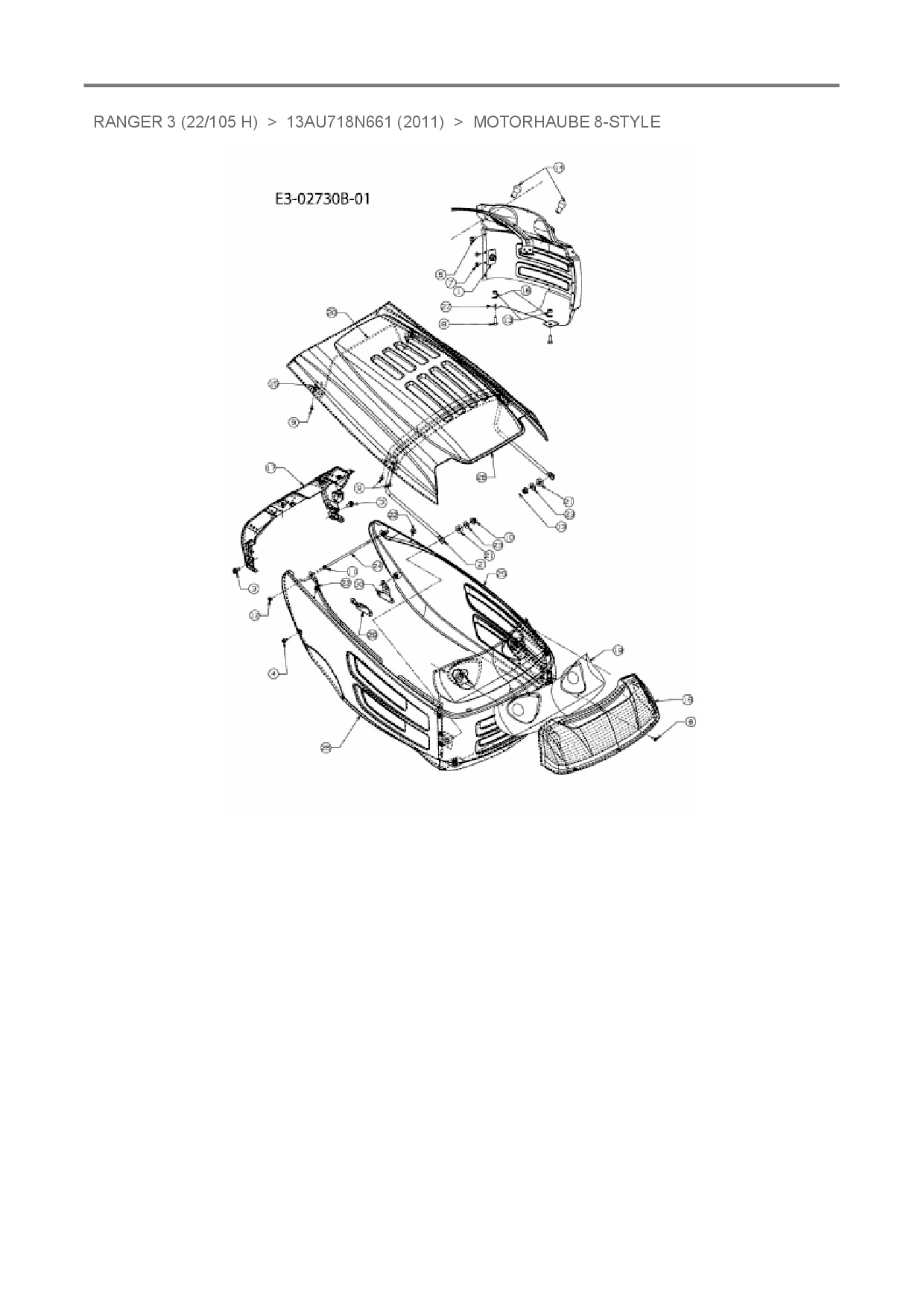 Ersatzteile für Rasentraktor Ranger Ranger 3 (22/105 H) aus der Zeichnung Motorhaube 8-Style: