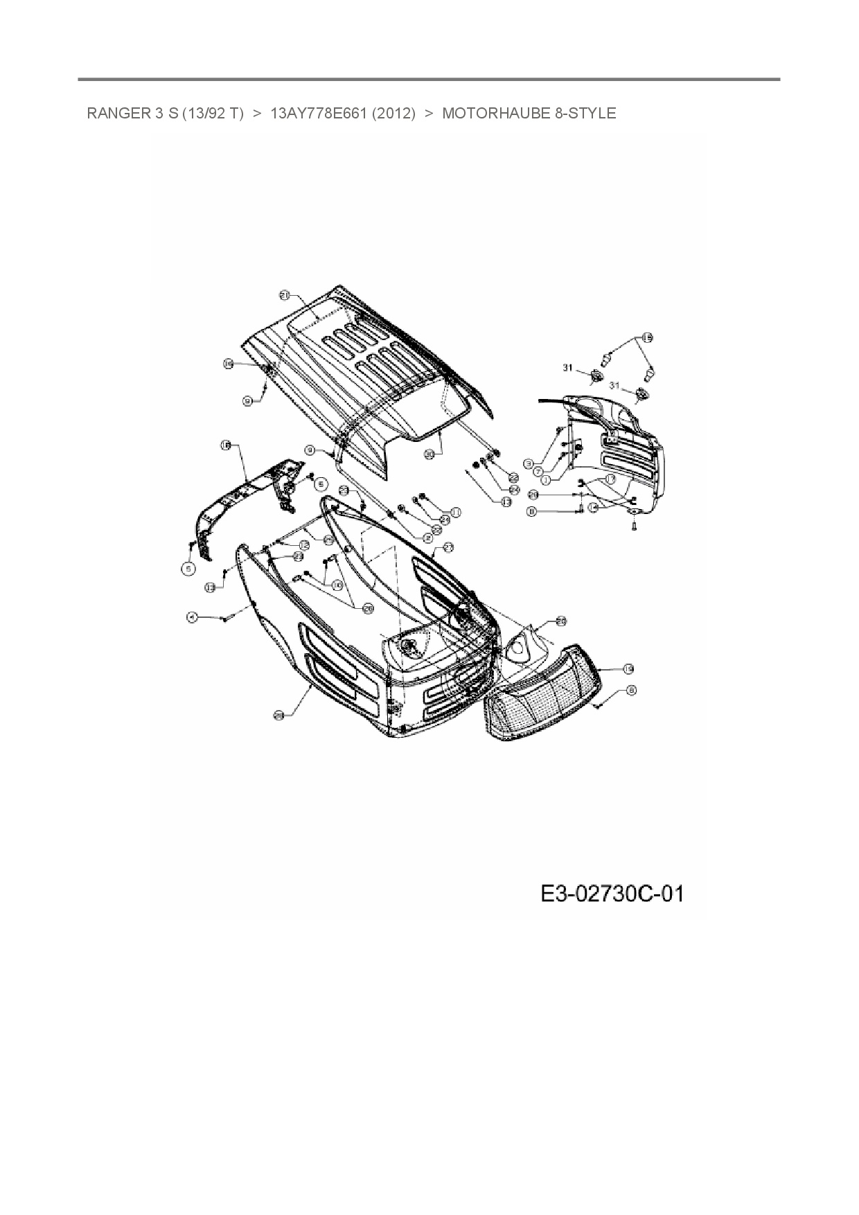 Ersatzteile für Rasentraktor Ranger Ranger 3 S (13/92 T) aus der Zeichnung Motorhaube 8-Style: