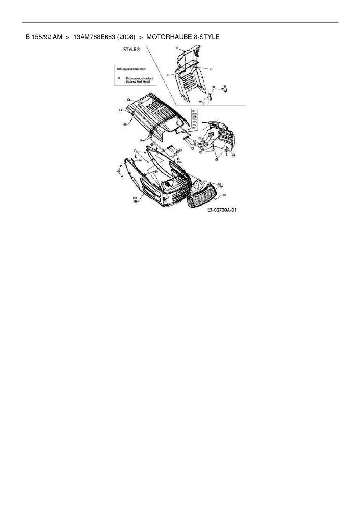 Ersatzteile für Rasentraktor Black-Line B 155/92 AM aus der Zeichnung Motorhaube 8-Style:
