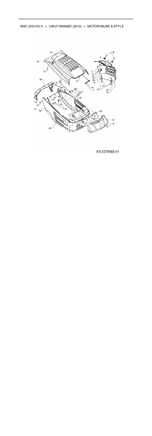 Ersatzteile für Rasentraktor Mac Allister Mac 220/105 H aus der Zeichnung Motorhaube 8-Style: