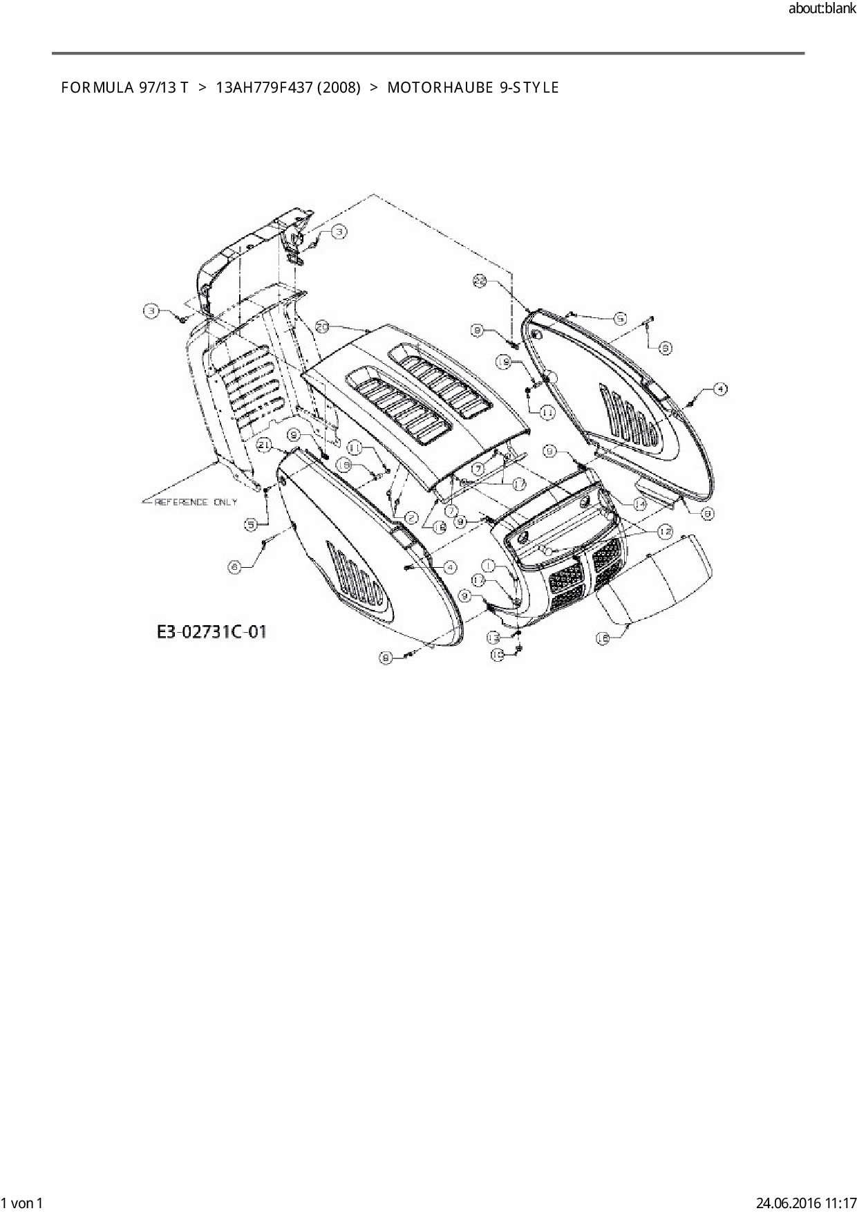 Ersatzteile für Rasentraktor EFCO Formula 97/13 T aus der Zeichnung Motorhaube 9-Style: