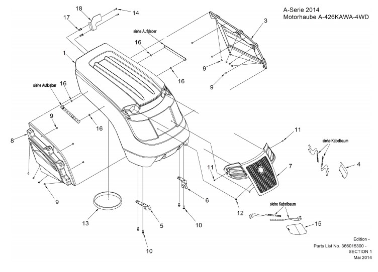 Zeichnung von ECHO-Motorgeräte Rasentraktoren A-Serie A-426KAWA-4WD Bj. 2016 Motorhaube A-426KAWA-4WD: