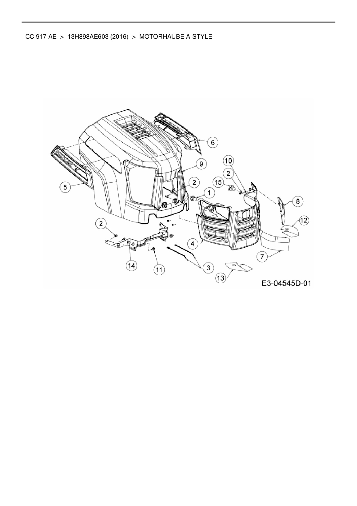 Ersatzteile für Rasentraktor Cub Cadet CC 917 AE aus der Zeichnung Motorhaube A-Style: