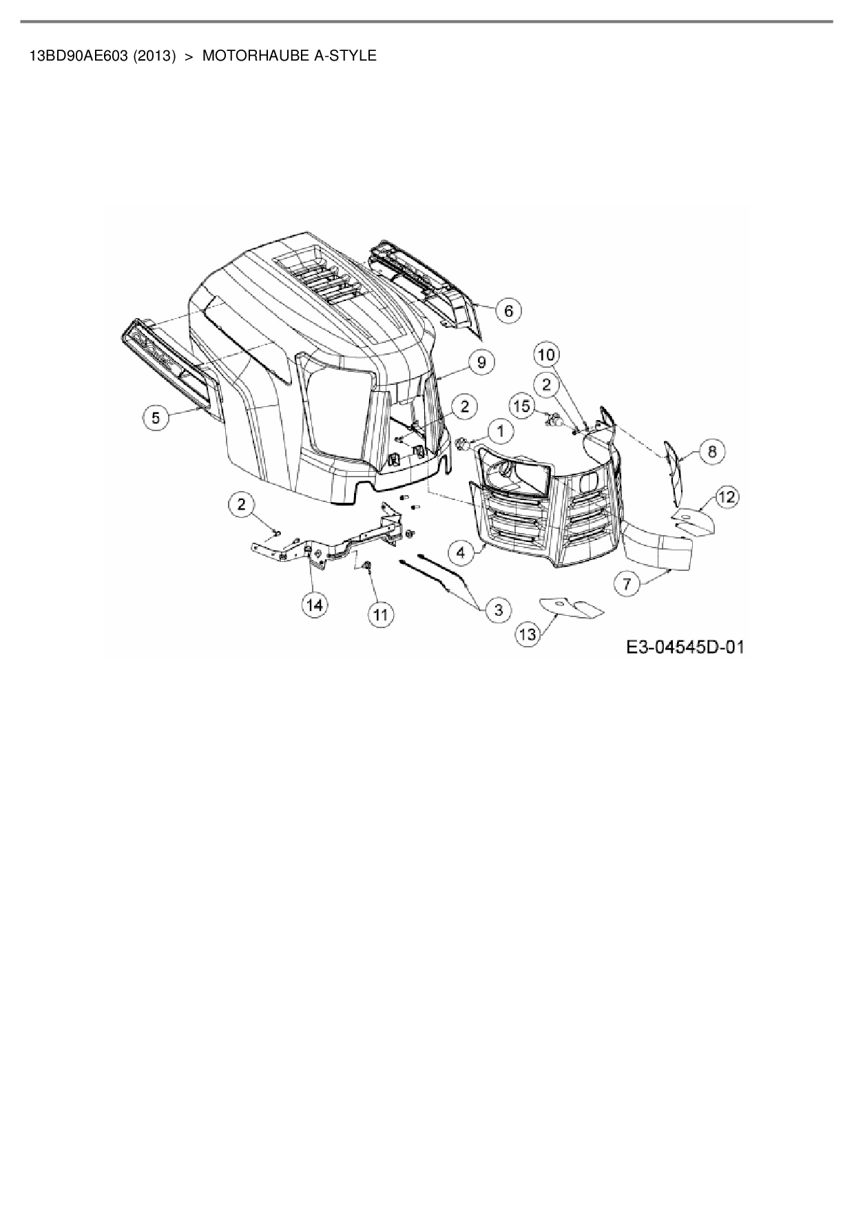 Ersatzteile für Rasentraktor Cub Cadet CC 1016 AE aus der Zeichnung Motorhaube A-Style: