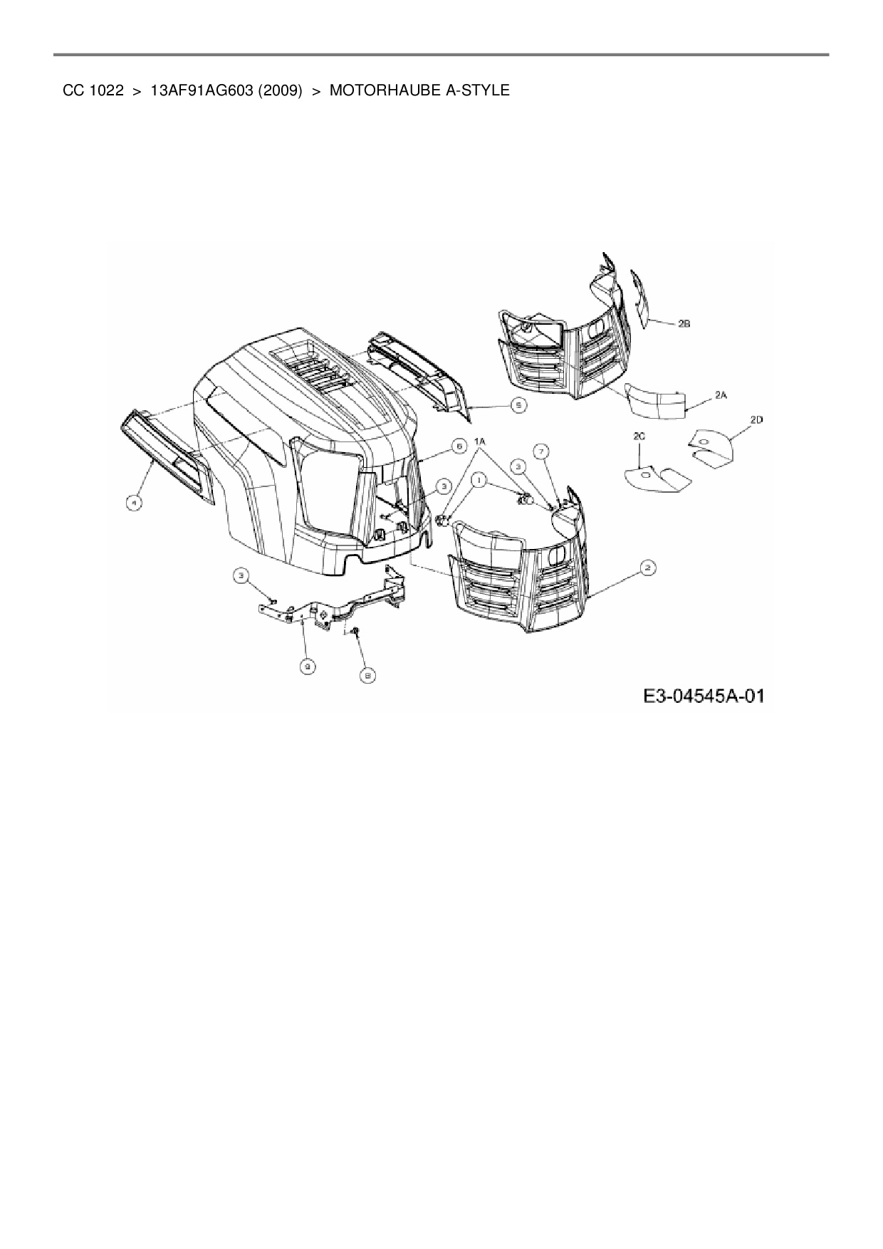 Ersatzteile für Rasentraktor Cub Cadet CC 1022 aus der Zeichnung Motorhaube A-Style: