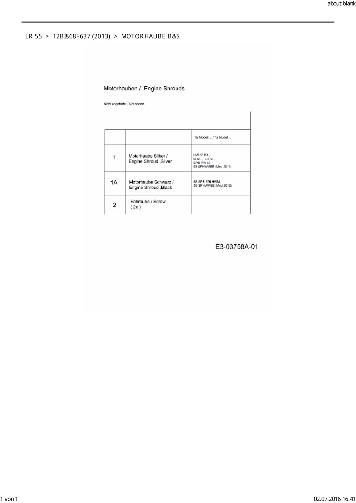 Download Ersatzteil-Zeichnung EFCO LR 55 Zeichnung Motorhaube B&S (PDF-Format)