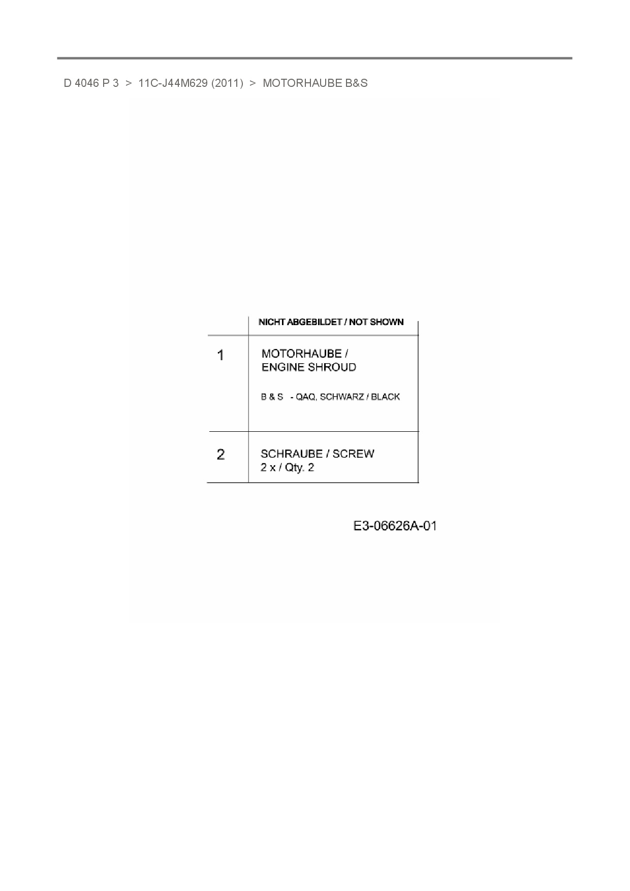 Ersatzteile für Motormäher Mr. Gardener D 4046 P 3 aus der Zeichnung Motorhaube B&S: