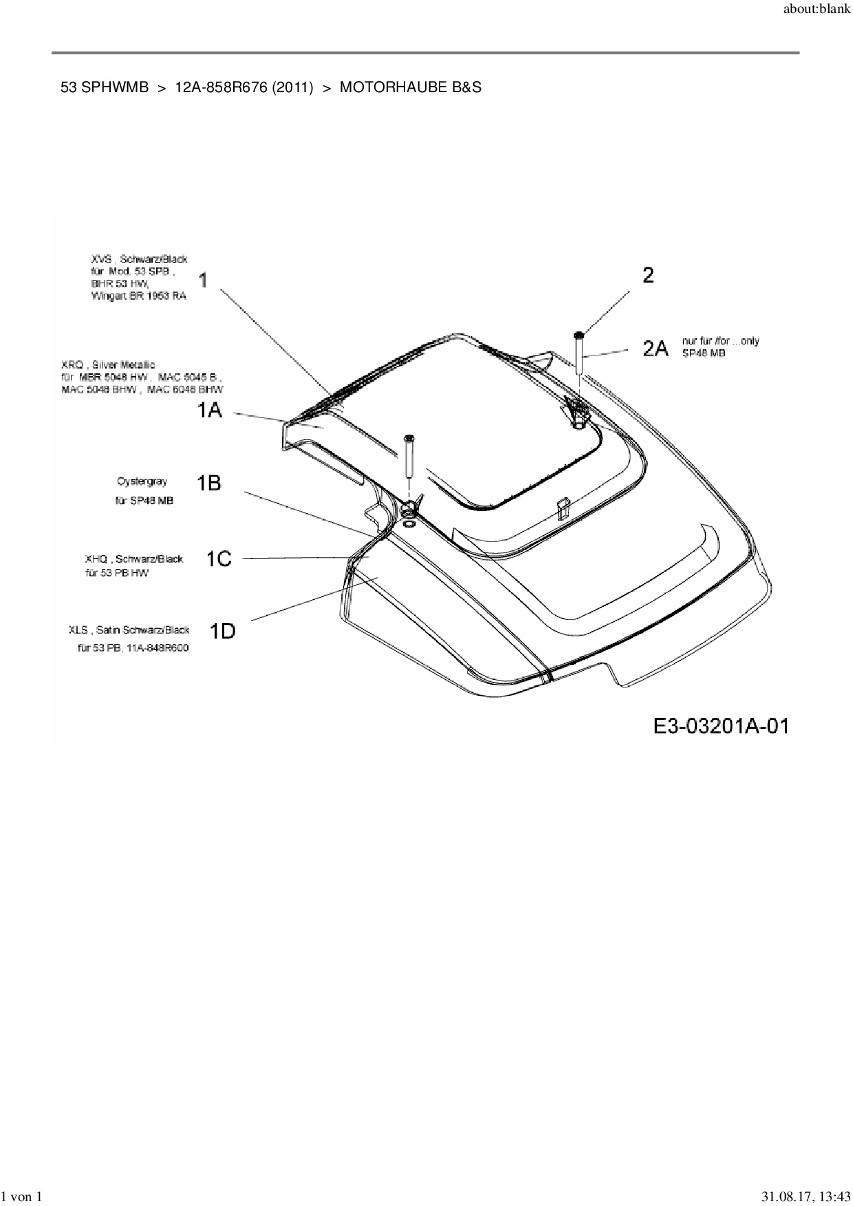 Ersatzteile für Motormäher mit Antrieb MTD 53 SPHWMB aus der Zeichnung Motorhaube B&S: