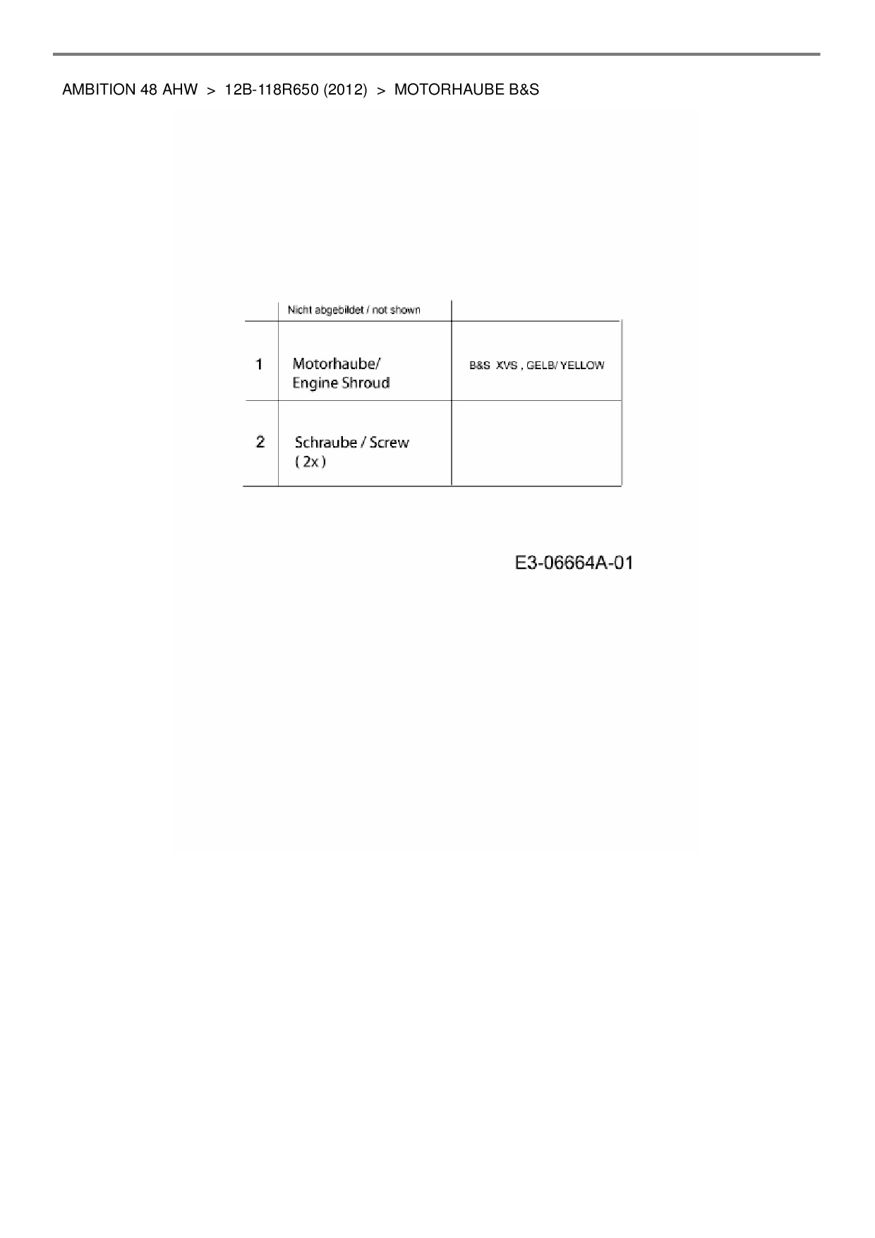 Download Ersatzteil-Zeichnung Wolf-Garten Ambition 48 AHW Zeichnung Motorhaube B&S (PDF-Format)