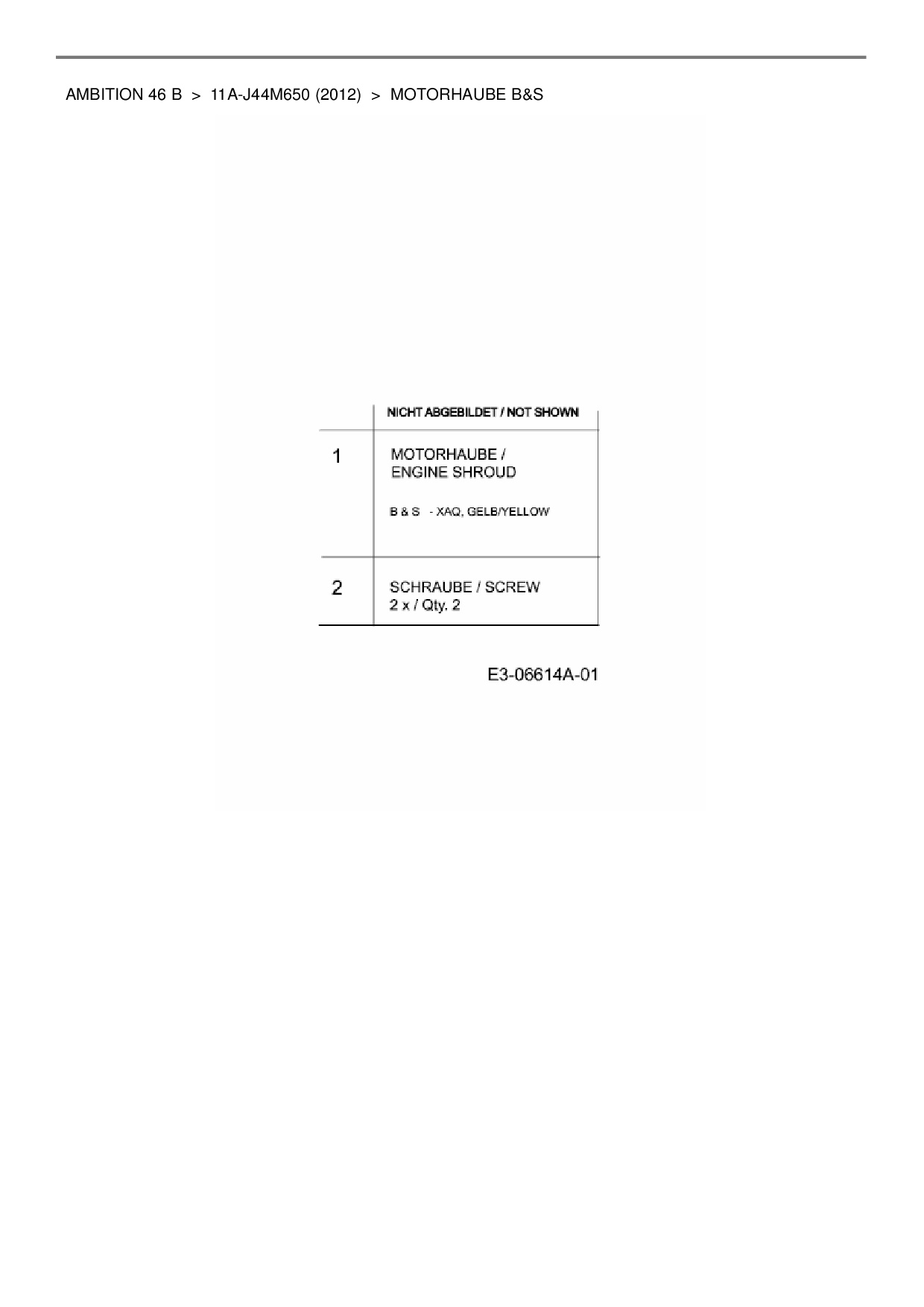 Ersatzteile für Motormäher Wolf-Garten Ambition 46 B aus der Zeichnung Motorhaube B&S: