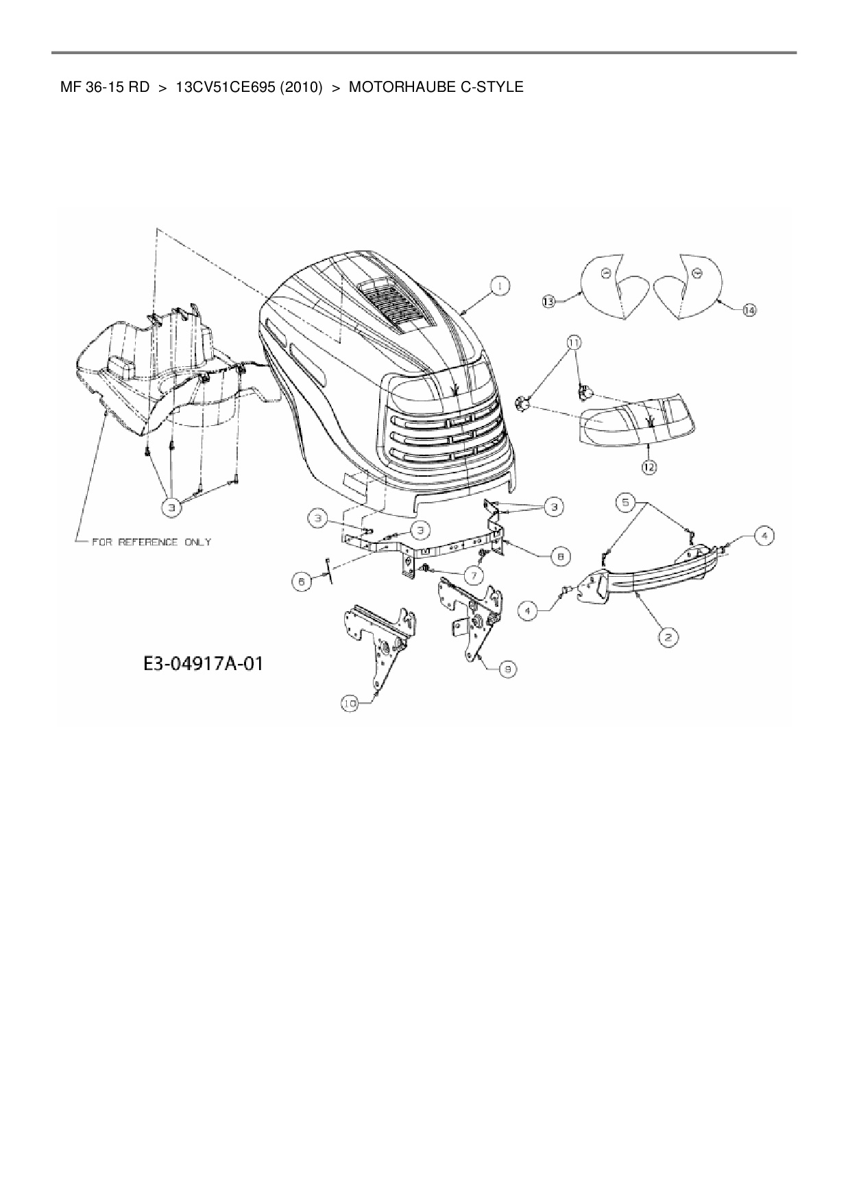 Zeichnung für Massey Ferguson Rasentraktor MF 36-15 RD mit der Geräte-Artikelnr. 13CV51CE695 ab Baujahr 2010: