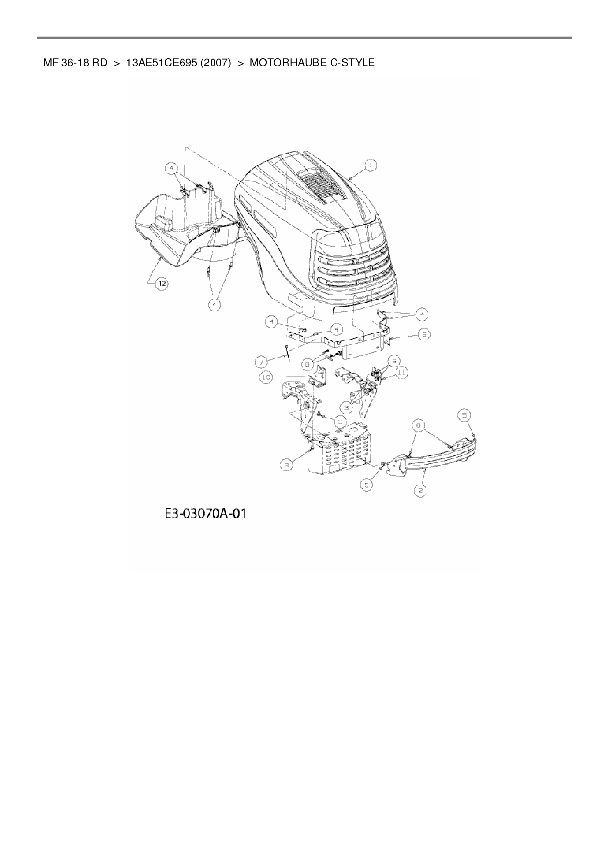 Ersatzteile für Rasentraktor Massey Ferguson MF 36-18 RD aus der Zeichnung Motorhaube C-Style: