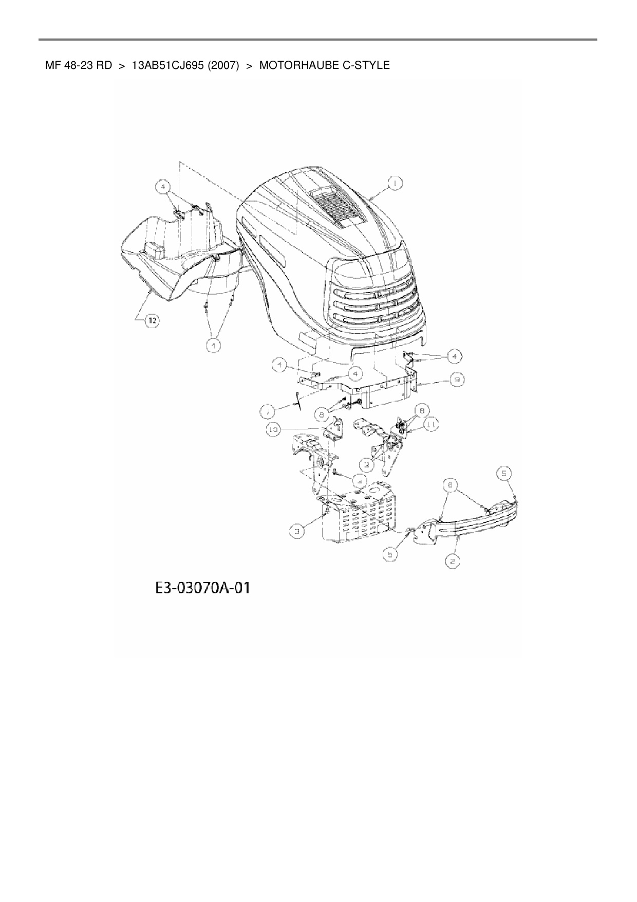 Ersatzteile für Rasentraktor Massey Ferguson MF 48-23 RD aus der Zeichnung Motorhaube C-Style: