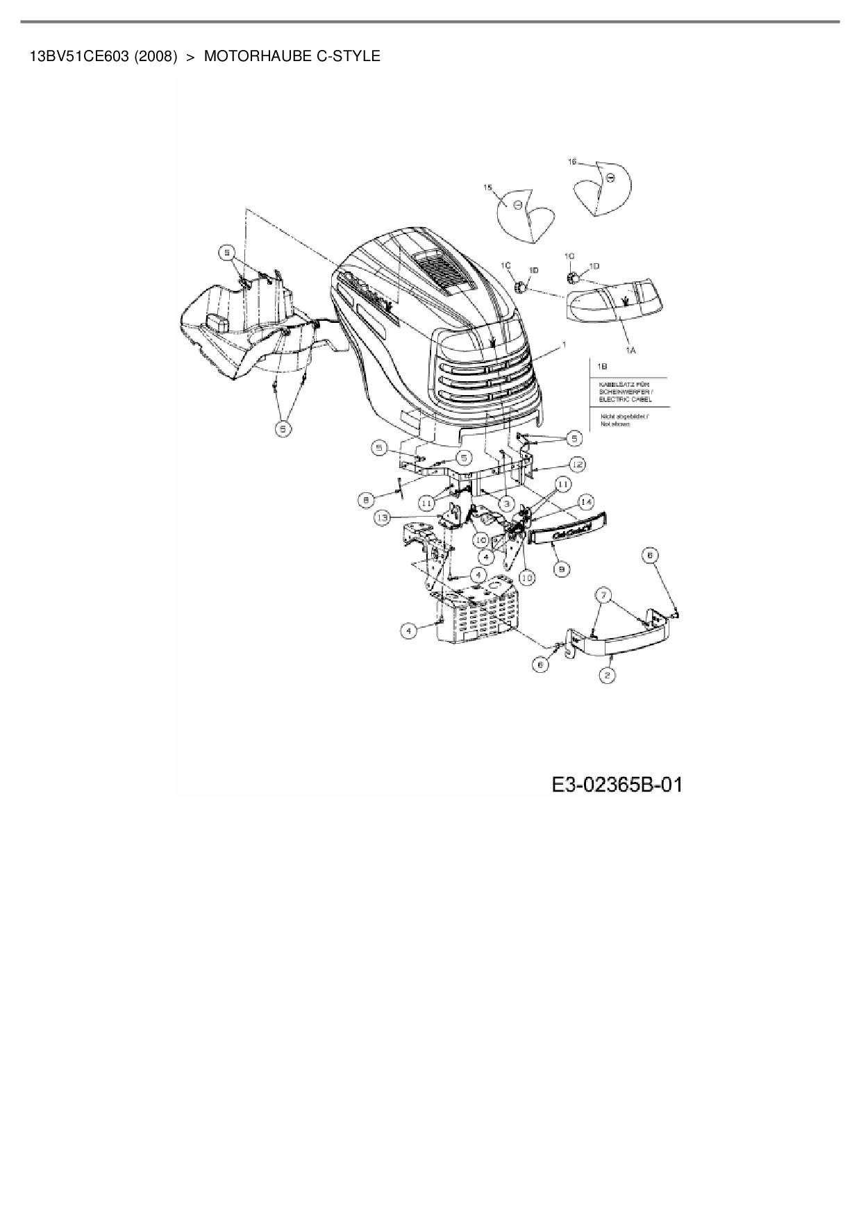 Ersatzteile für Rasentraktor Cub Cadet CC 1015 RD-E aus der Zeichnung Motorhaube C-Style: