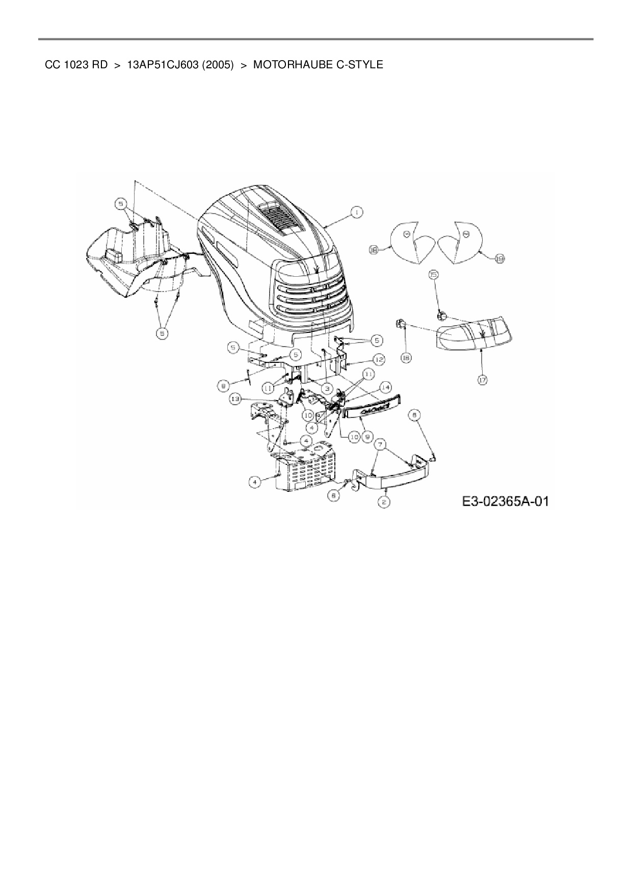Download Ersatzteil-Zeichnung Cub Cadet CC 1023 RD Zeichnung Motorhaube C-Style (PDF-Format)