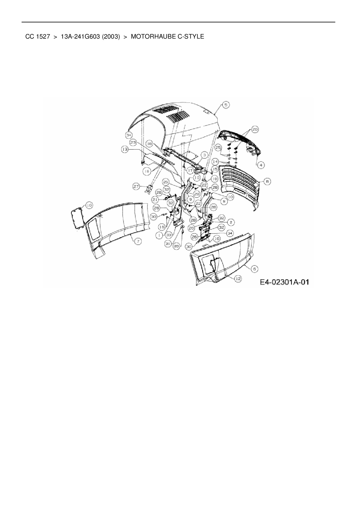 Ersatzteile für Rasentraktor Cub Cadet CC 1527 aus der Zeichnung Motorhaube C-Style: