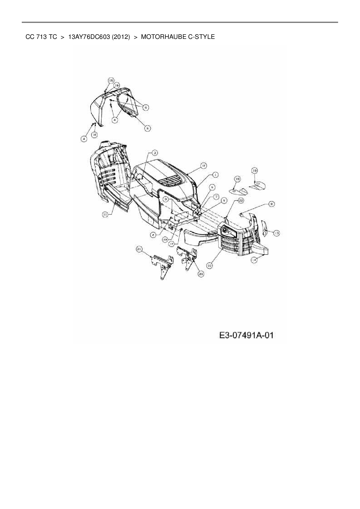 Ersatzteile für Rasentraktor Cub Cadet CC 713 TC aus der Zeichnung Motorhaube C-Style: