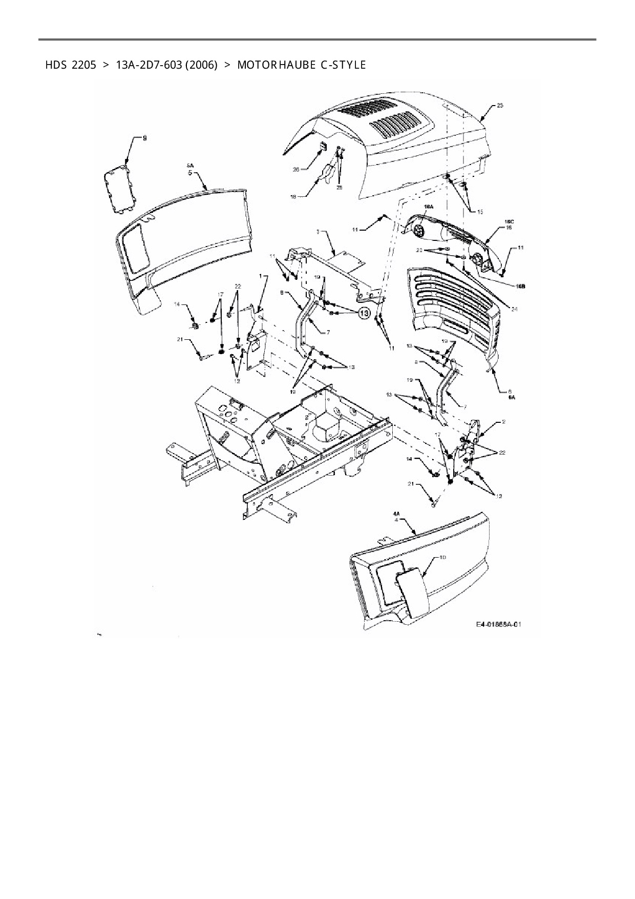 Ersatzteile für Rasentraktor Cub Cadet HDS 2205 aus der Zeichnung Motorhaube C-Style: