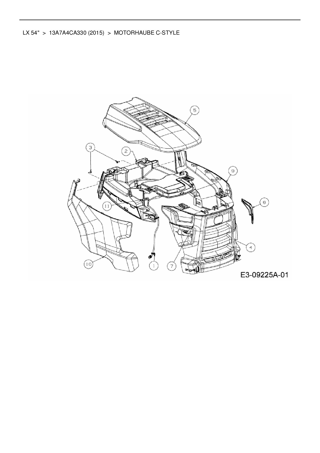 Ersatzteile für Rasentraktor Cub Cadet LX 54" aus der Zeichnung Motorhaube C-Style: