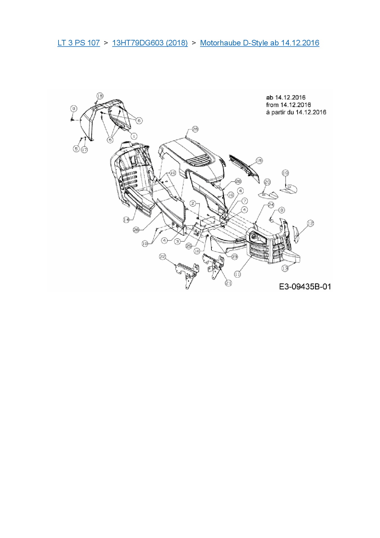 Ersatzteile für Rasentraktor Cub Cadet LT 3 PS 107 aus der Zeichnung Motorhaube D-Style ab 14.12.2016:
