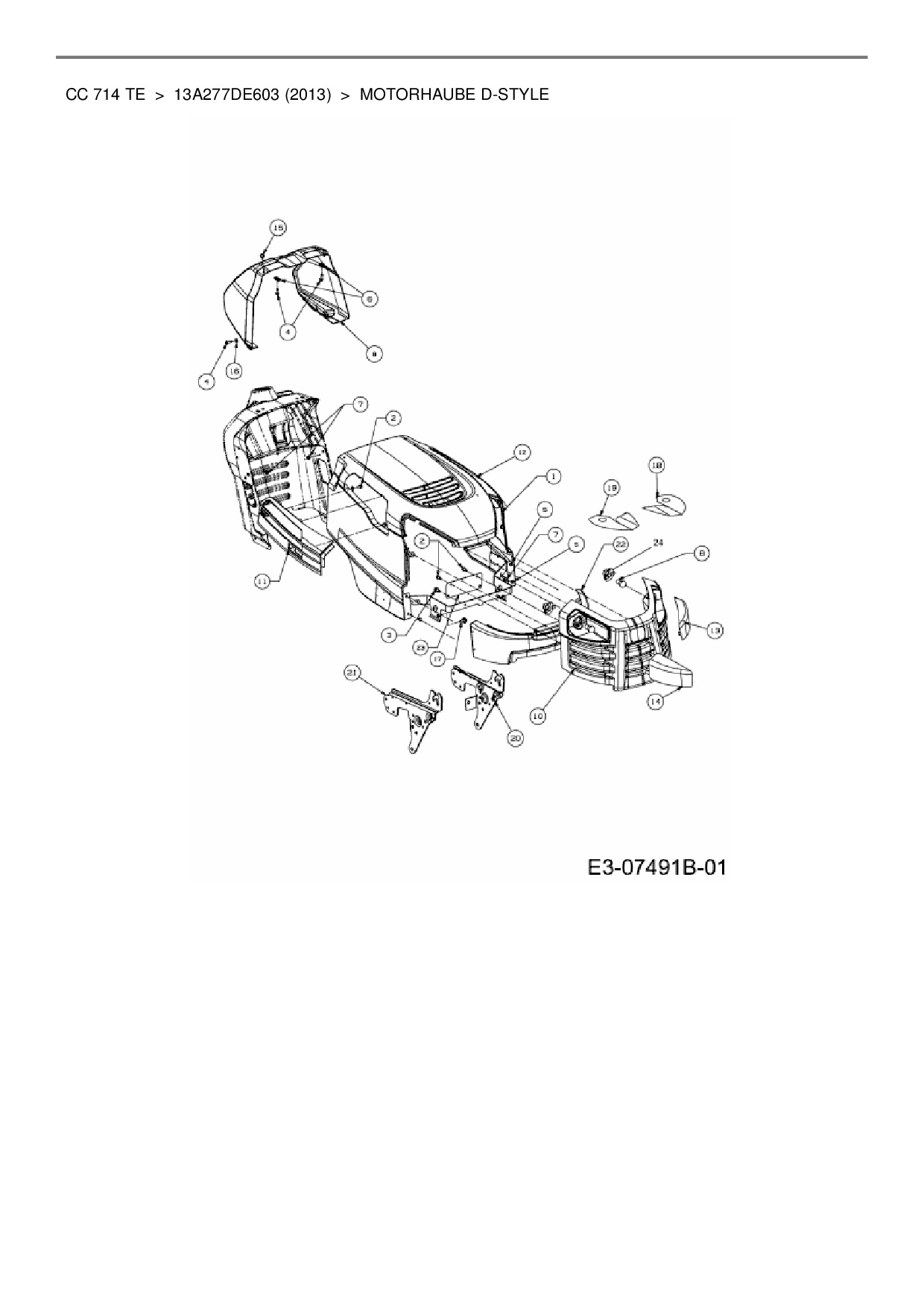 Download Ersatzteil-Zeichnung Cub Cadet CC 714 TE Zeichnung Motorhaube D-Style (PDF-Format)