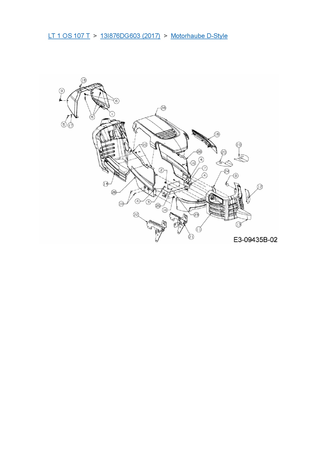 Ersatzteile für Rasentraktor Cub Cadet LT 1 OS 107 T aus der Zeichnung Motorhaube D-Style: