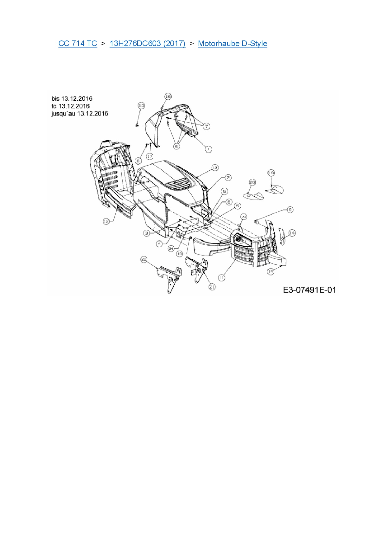 Download Ersatzteil-Zeichnung Cub Cadet CC 714 TC Zeichnung Motorhaube D-Style (PDF-Format)