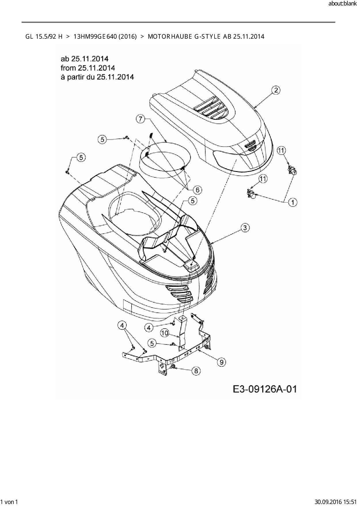Ersatzteile für Rasentraktor Gartenland GL 15.5/92 H aus der Zeichnung Motorhaube G-Style ab 25.11.2014: