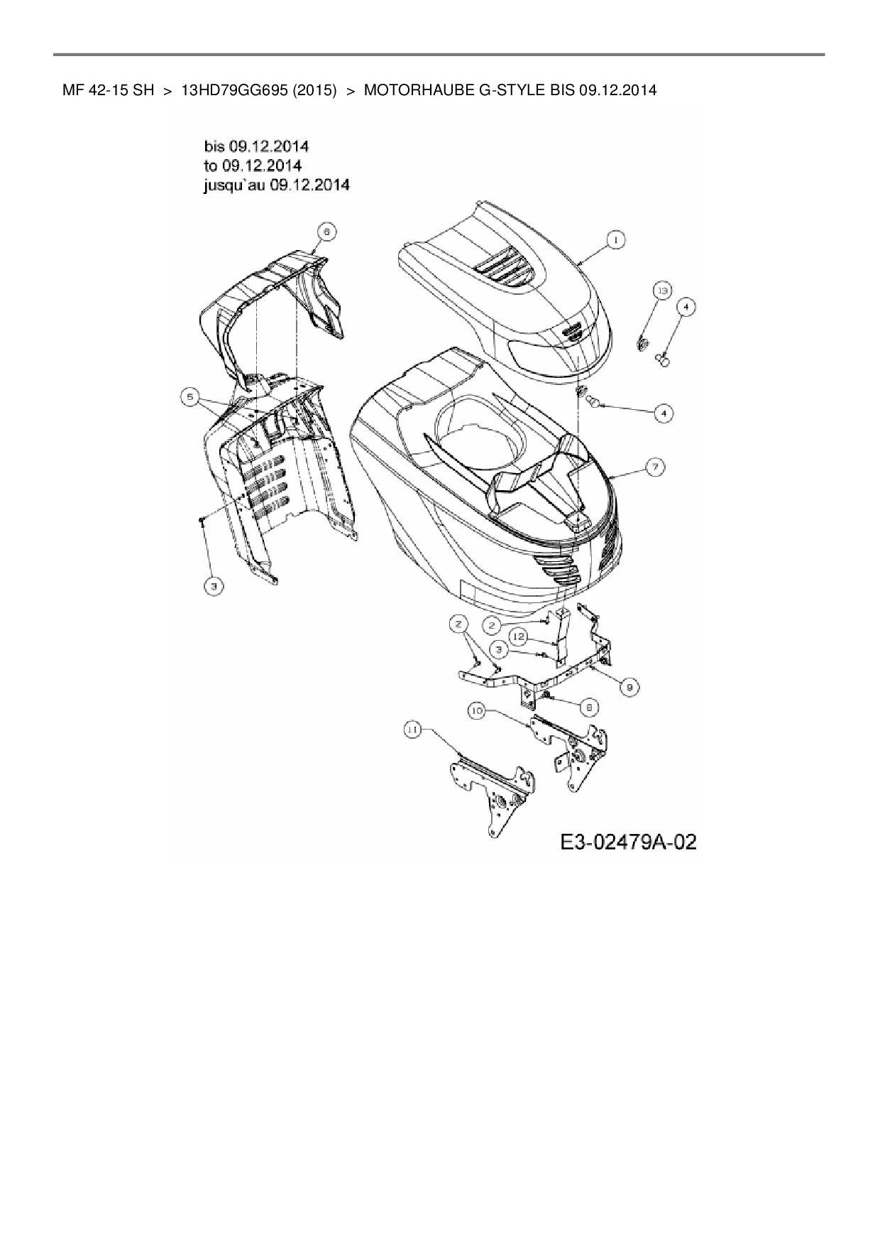 Ersatzteile für Rasentraktor Massey Ferguson MF 42-15 SH aus der Zeichnung Motorhaube G-Style bis 09.12.2014: